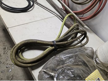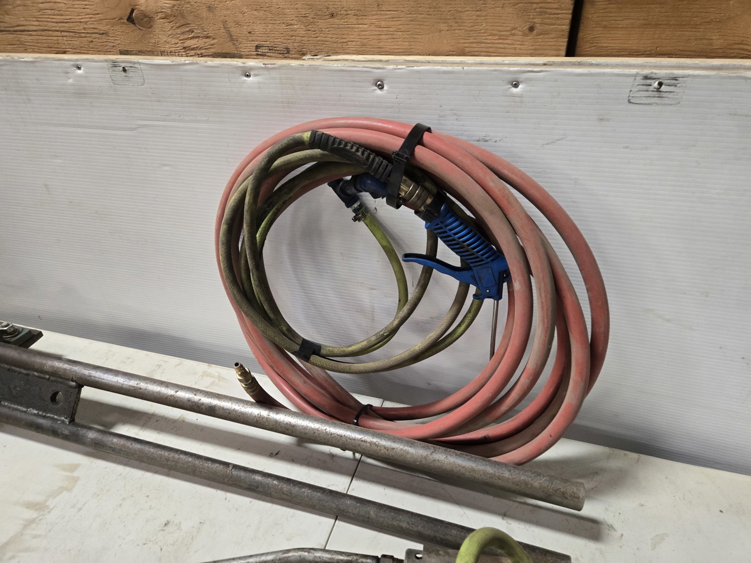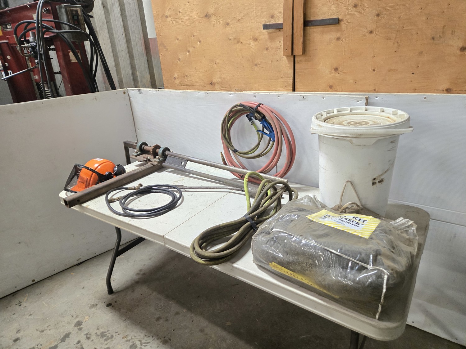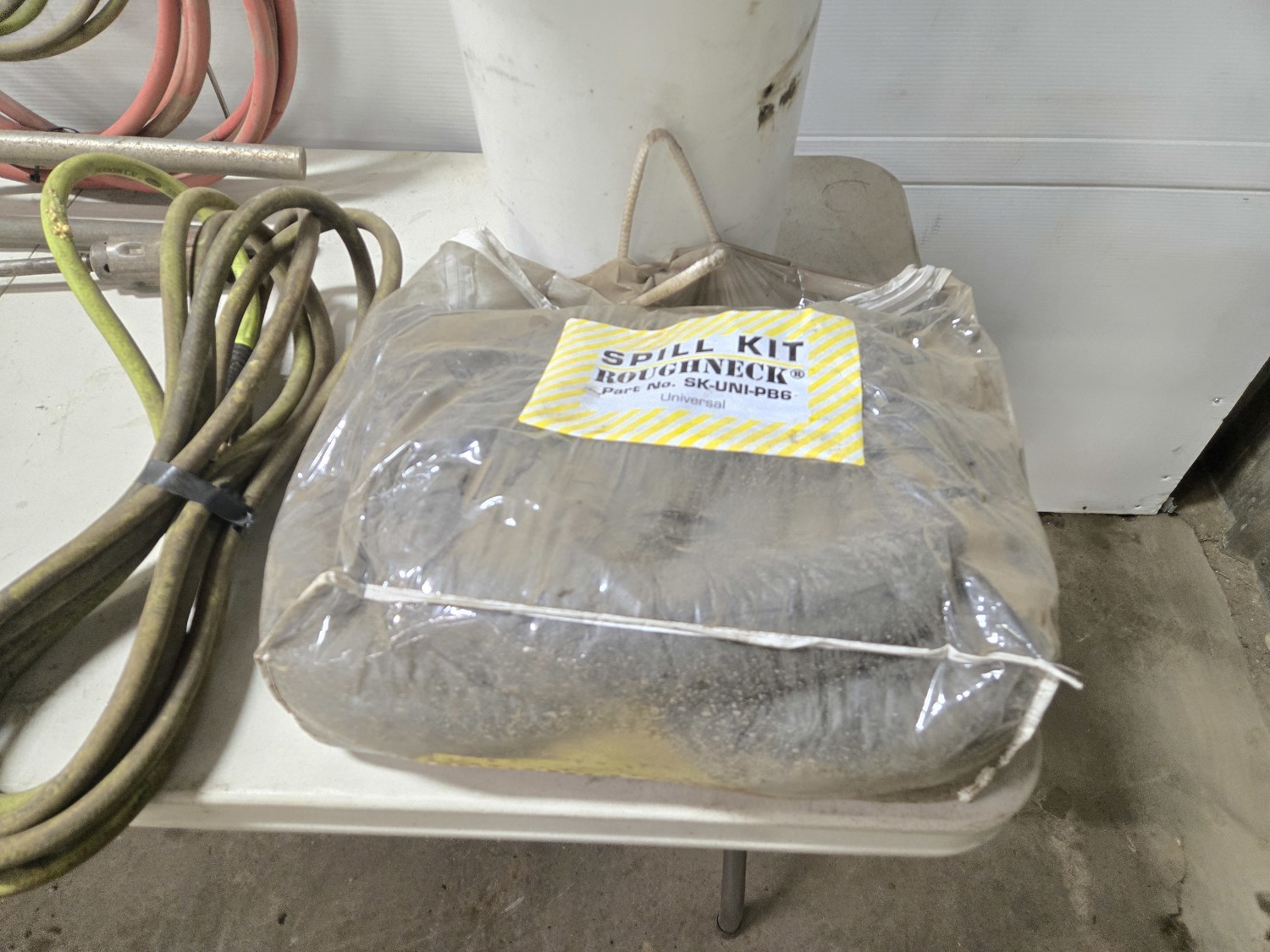 (1) Hard hat, (2) miscellaneous air hoses, (1) tiger torch, (2) spill kits, (1) Receiver hitch tarp rollers