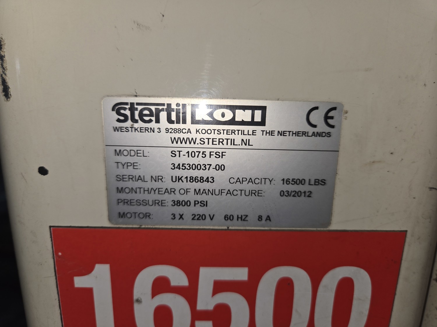2012 (2) Sertil Koni ST1075FSE 16,500 lb Truck Hoists