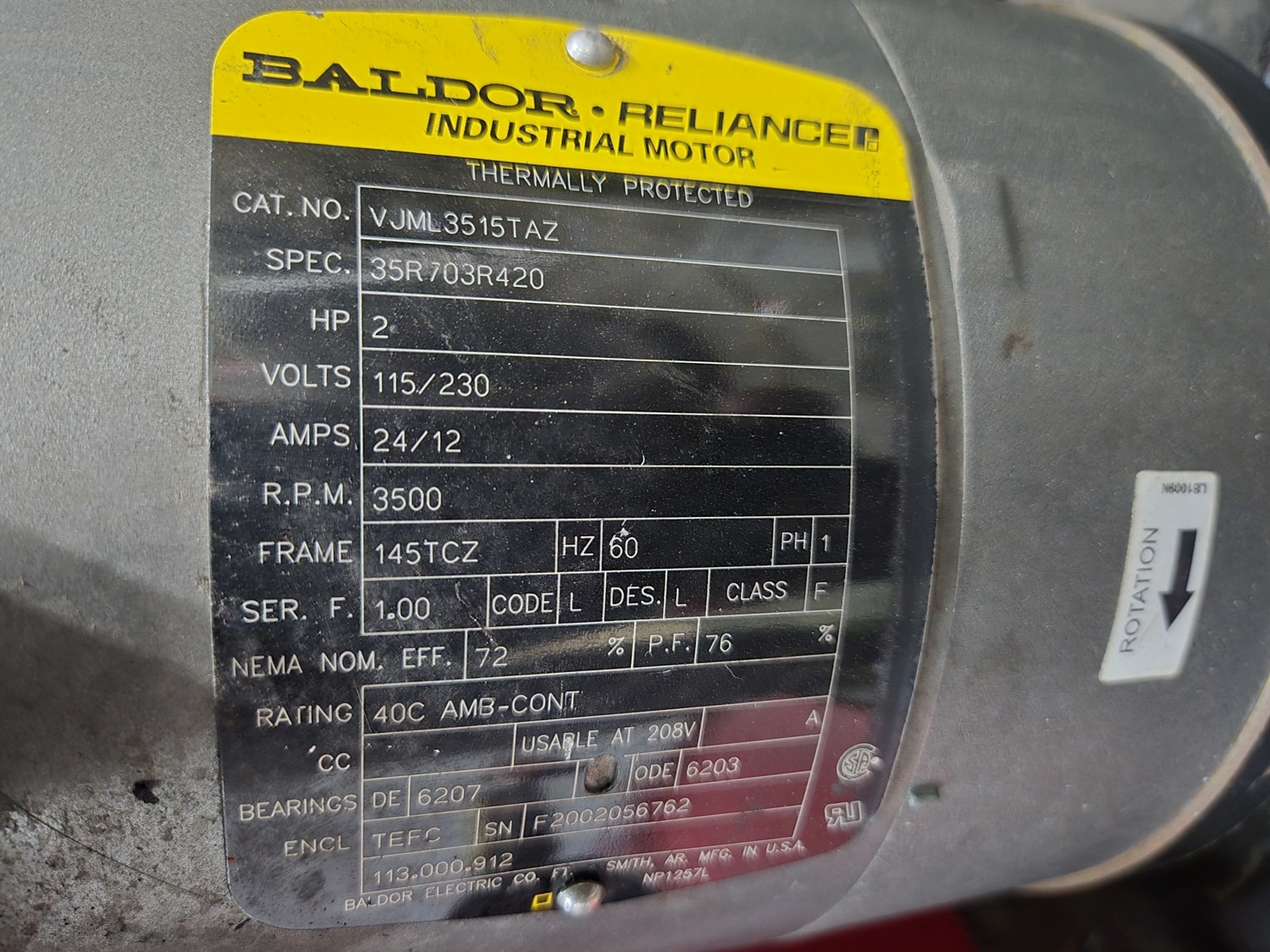 2 HP electric motor, 230 volt, single phase
