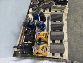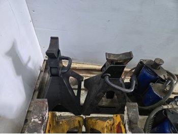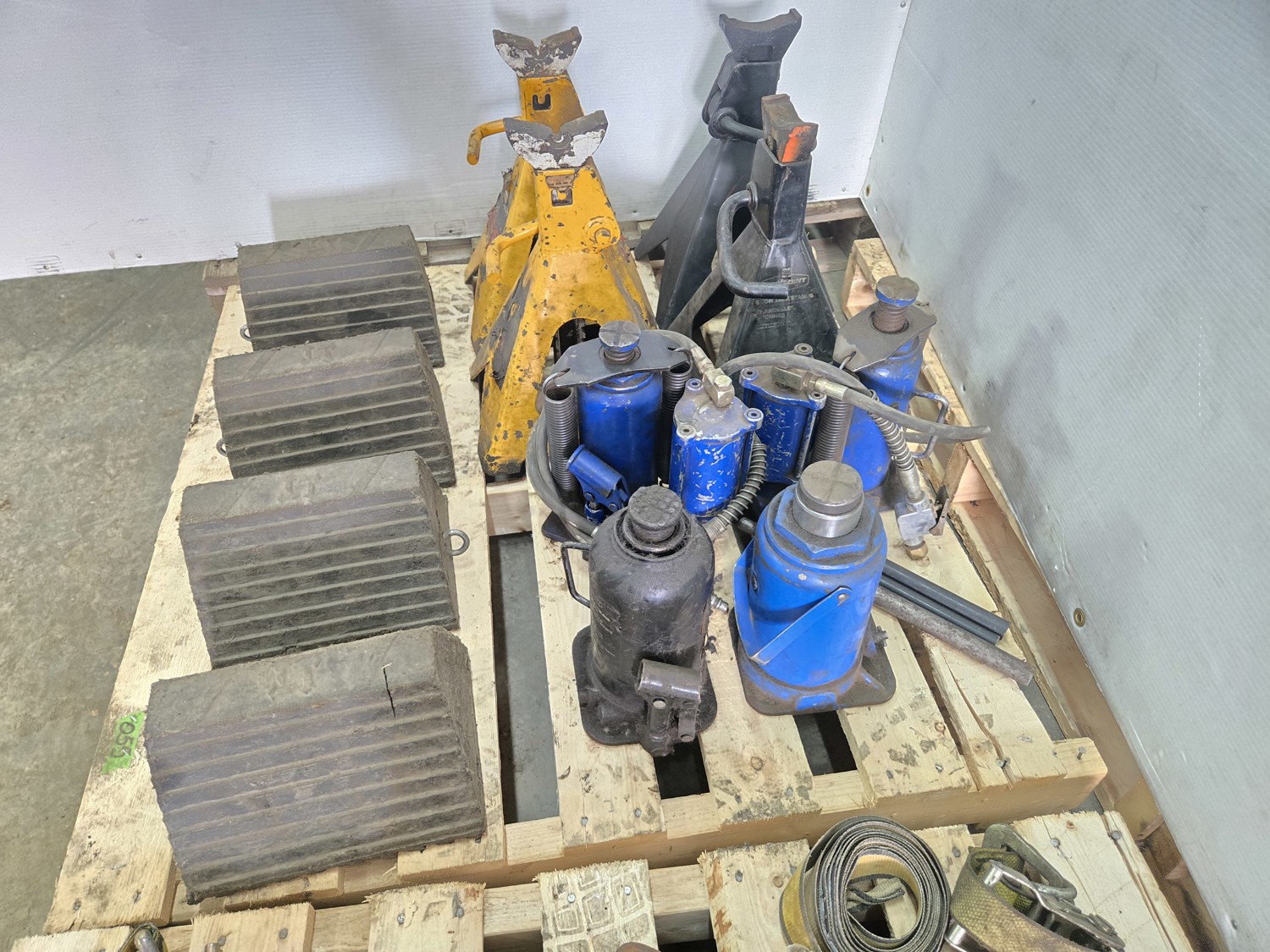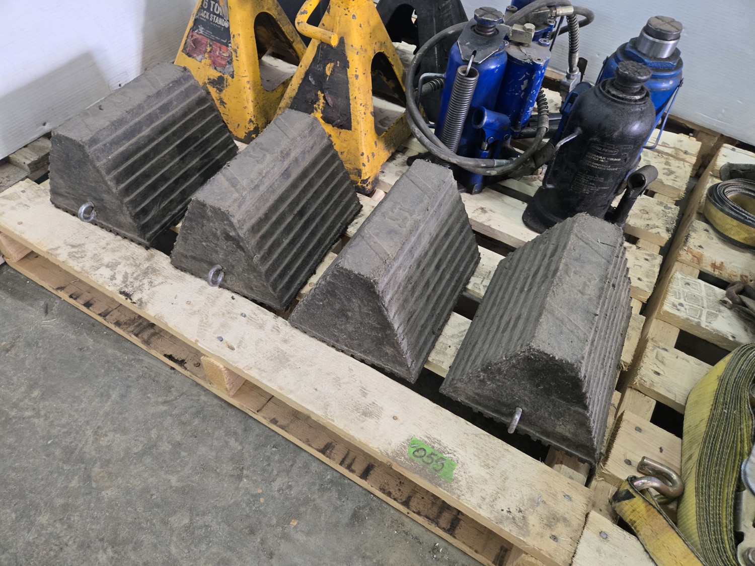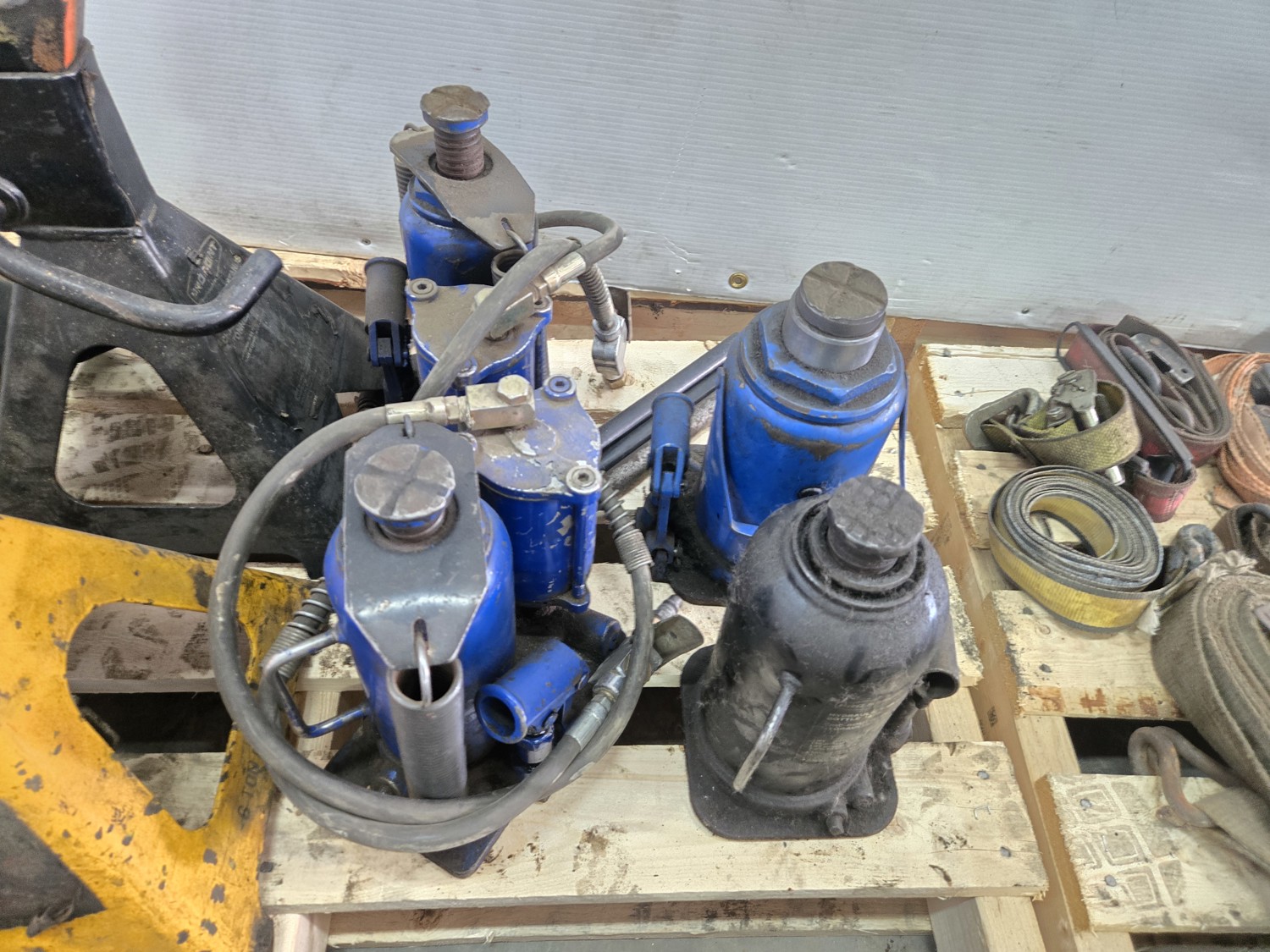 (4) Jack Stands, (4) Wheel Chocks. (2) 20 Ton Air Operated & (2) Bottle Jacks