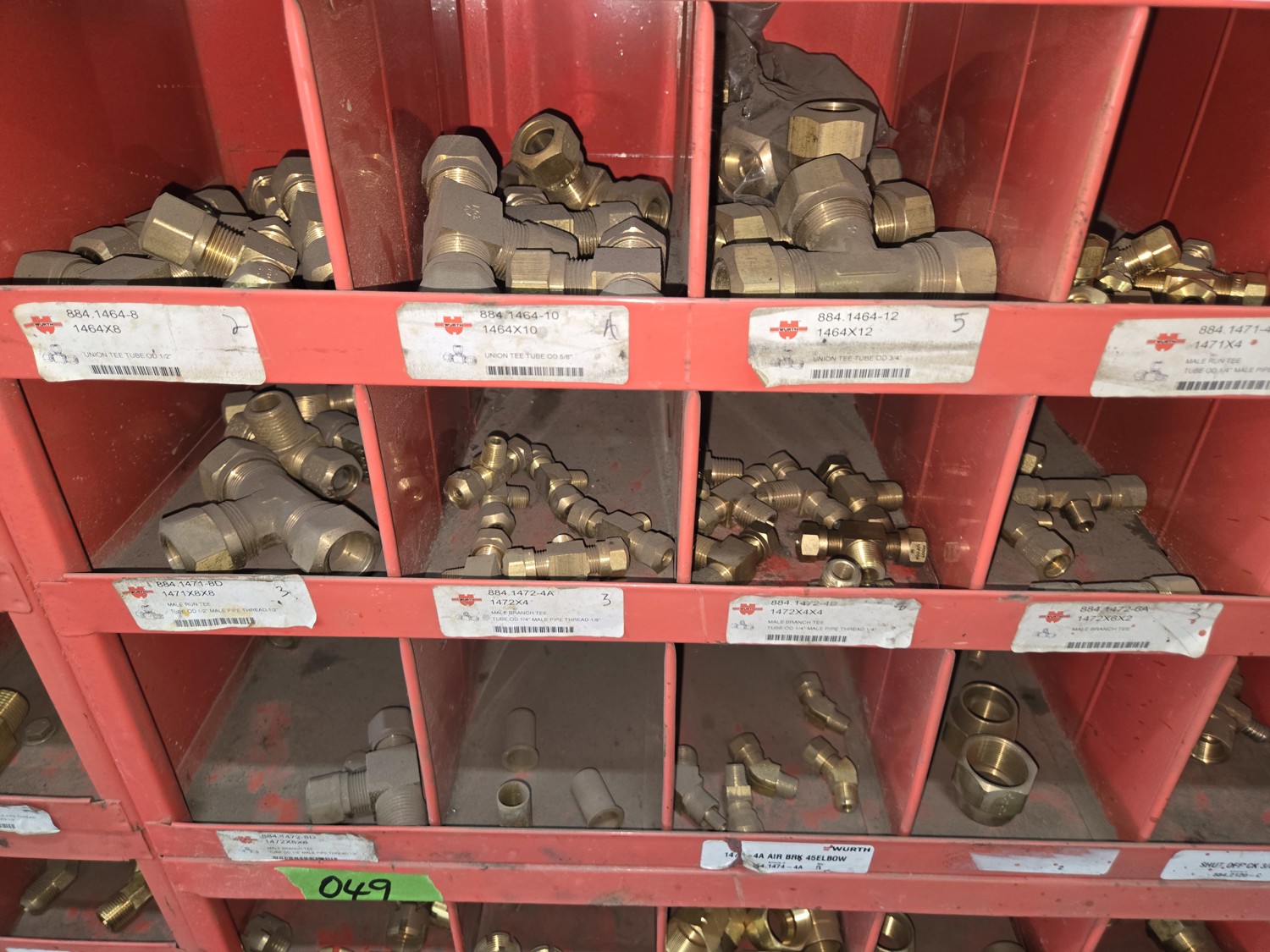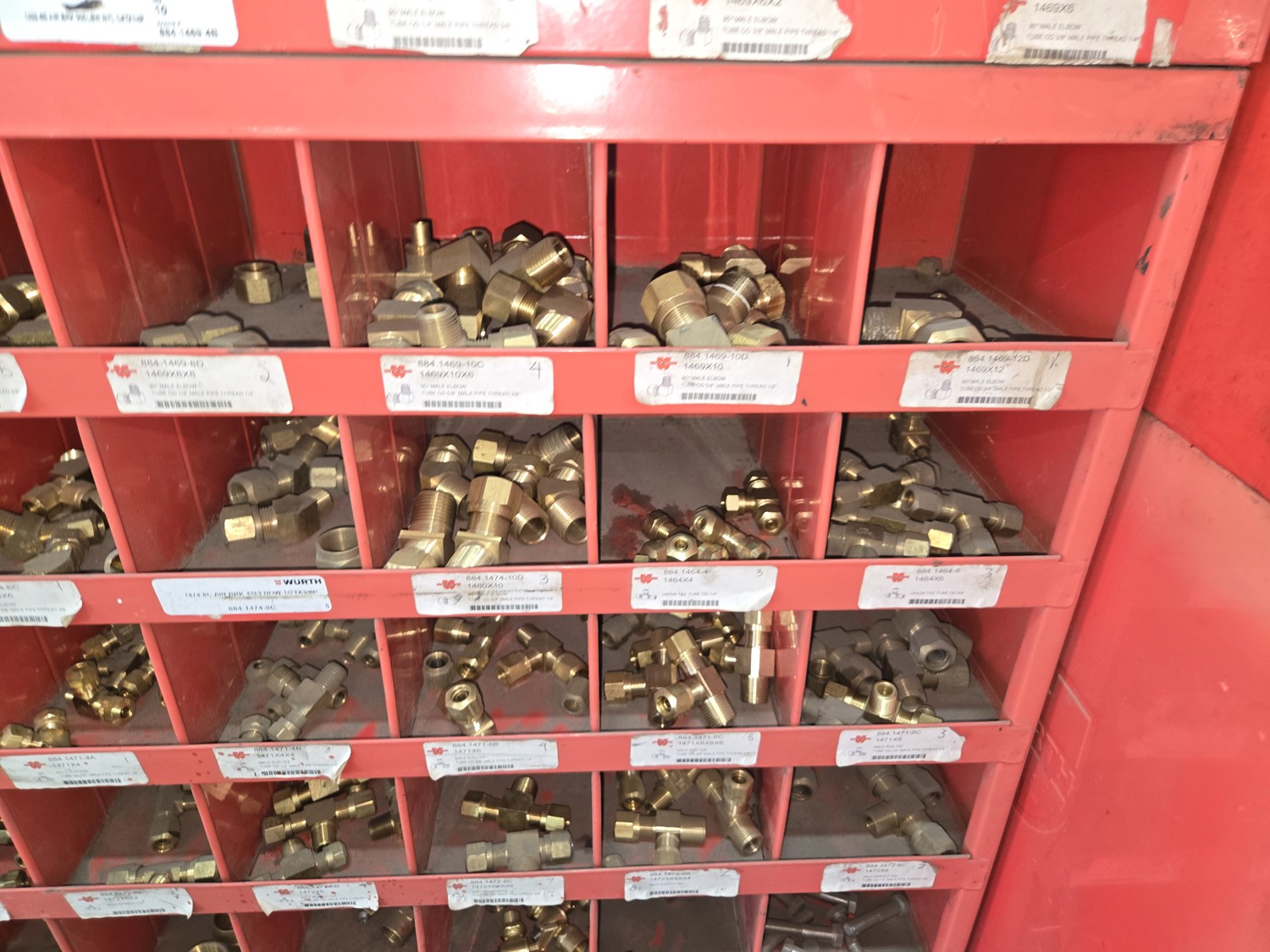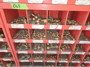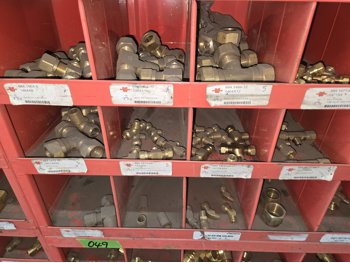 40 Compartment Parts Bin with Large Qty of Assorted Brass Fittings