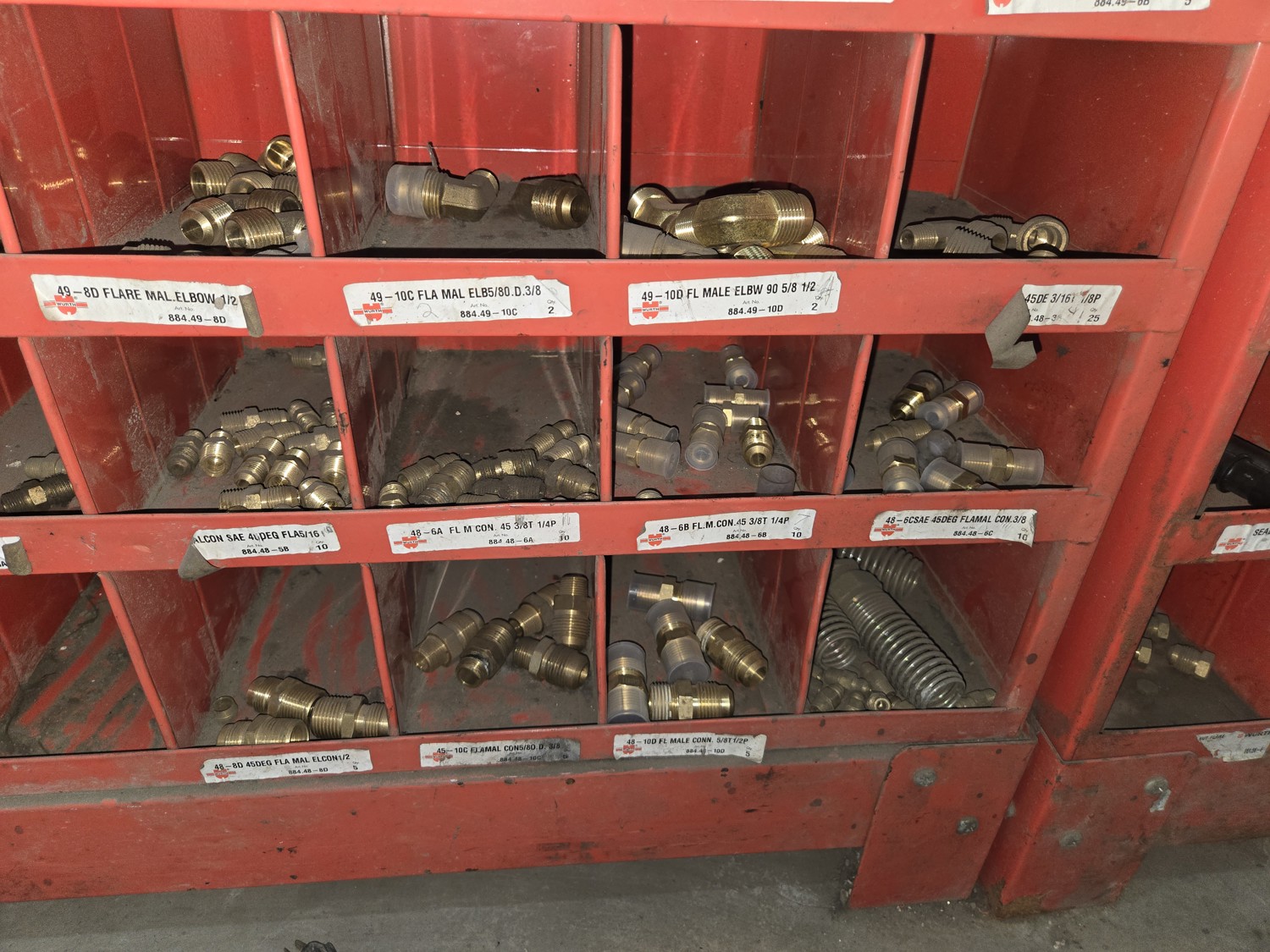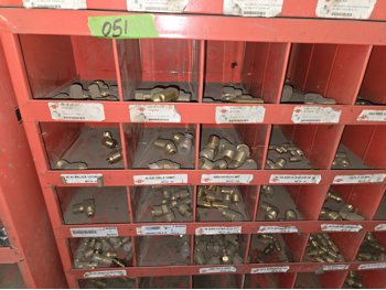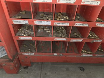 40 Compartment Parts Bin with Large Qty of Assorted Brass Fittings
