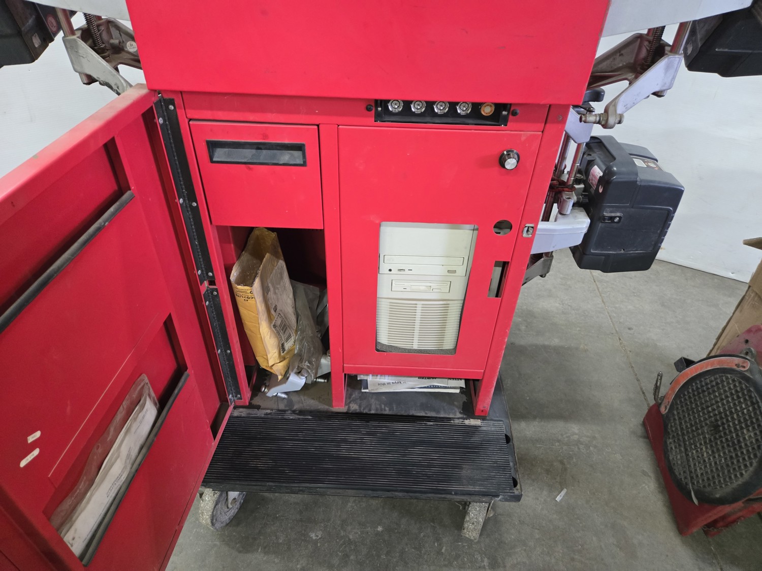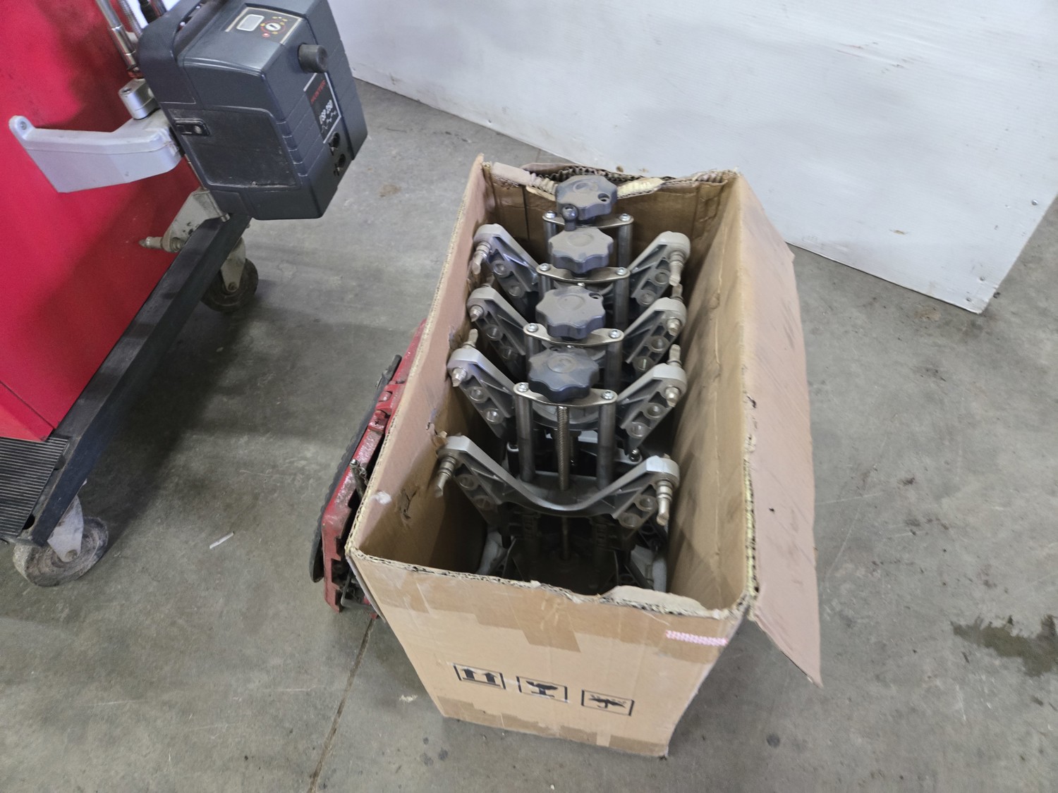 (2) tire rotator plates, (1) set of rim clamps from 17 inch to 24.5 inch, (1) set of rim clamps from 13 inch to 18 inch, software for automotive and heavy duty trucks