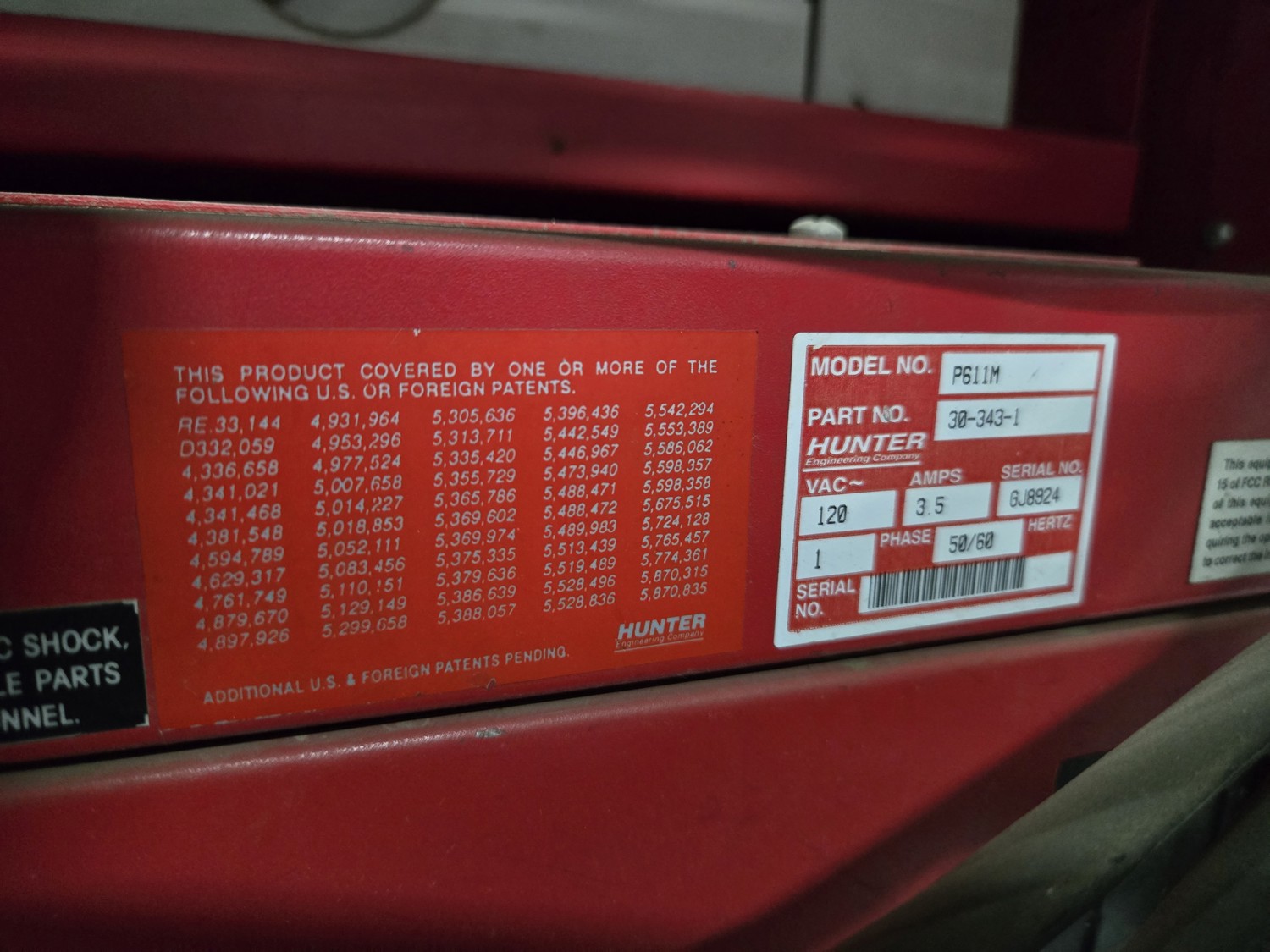 Hunter P611 Wheel Alignment Machine