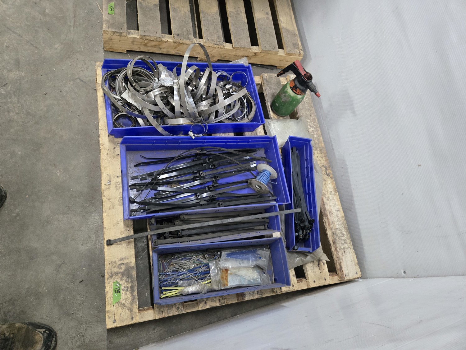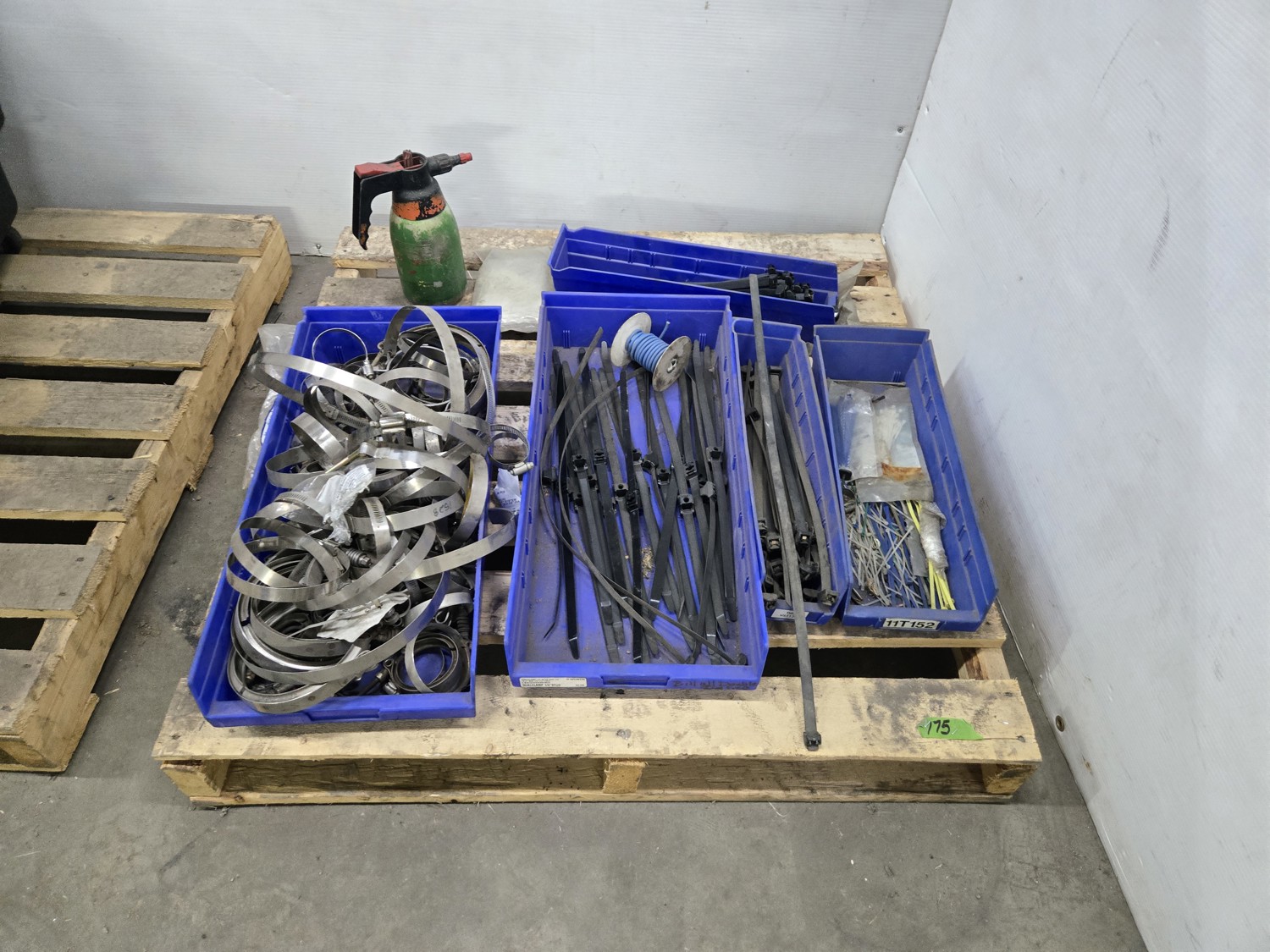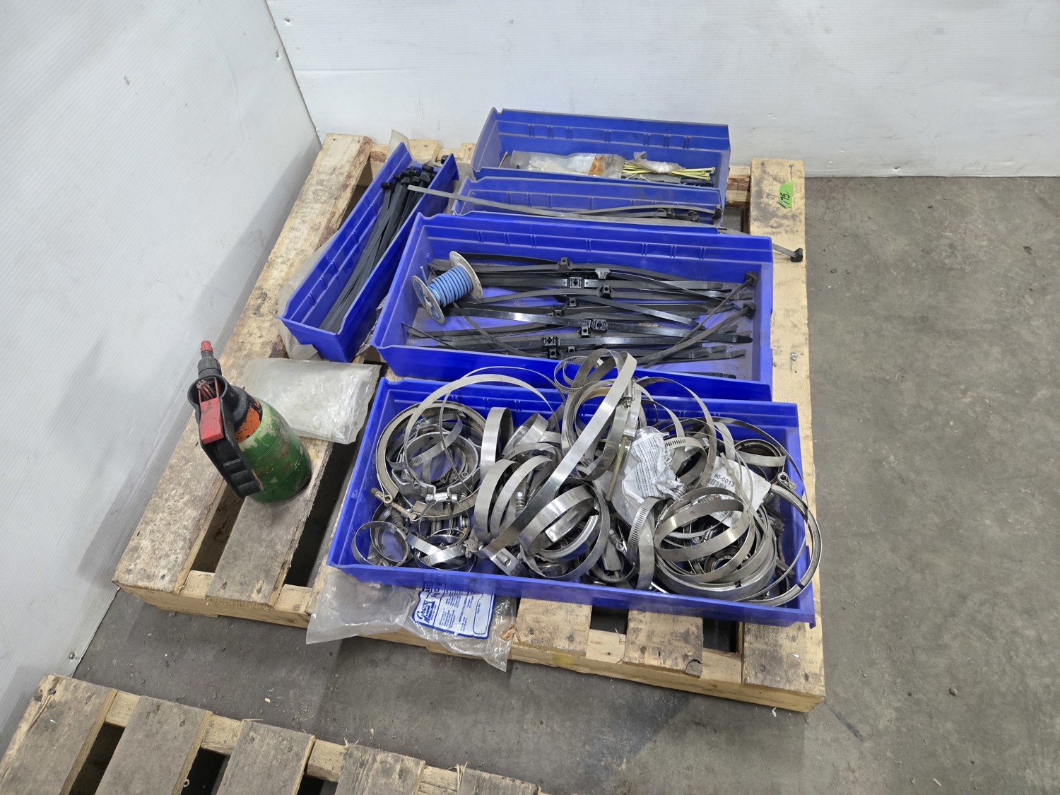 Qty of Zip Ties, (5) Poly Parts Bins, Qty of V-Band Clamps & Spray Bottle