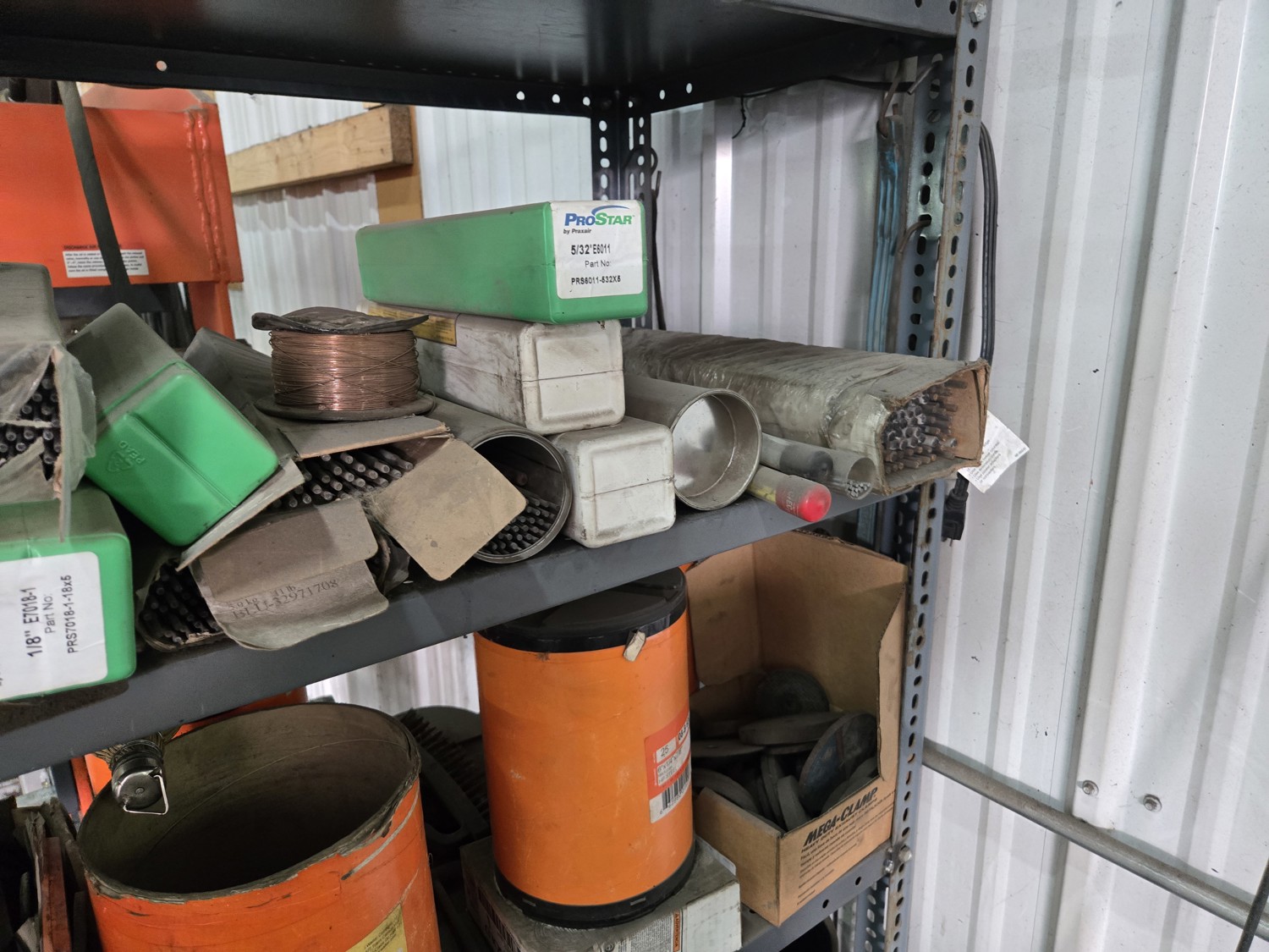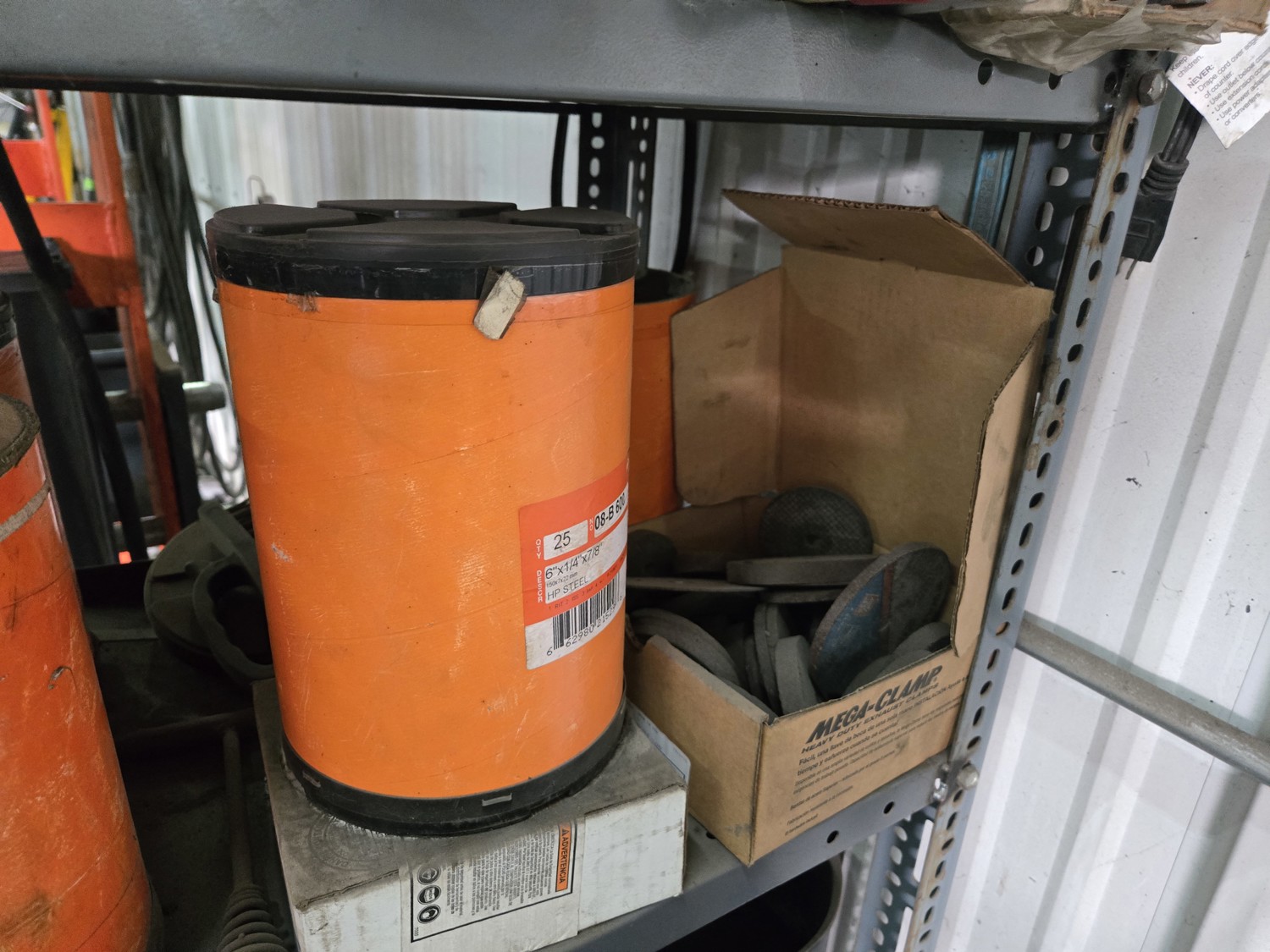 welding rods, grinding disc's and miscellaneous, shelf 18 inch deep X 36 inch wide X 72 inch high