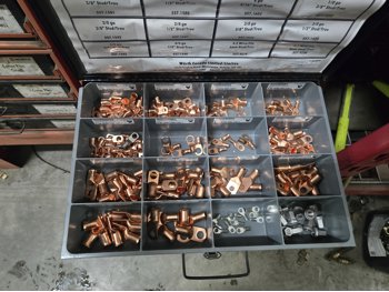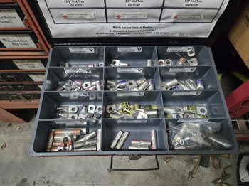 includes, metric bolts, body clips, heat shrink electrical connectors, dual wall shrink tube, ATO & mini fuses, HD power lugs, light duty copper lugs, rubber grommets, caps & plugs