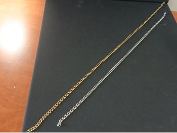 (1) 26 inch Gold tone, (1) 22 inch Silver tone. Both require clasp repair.