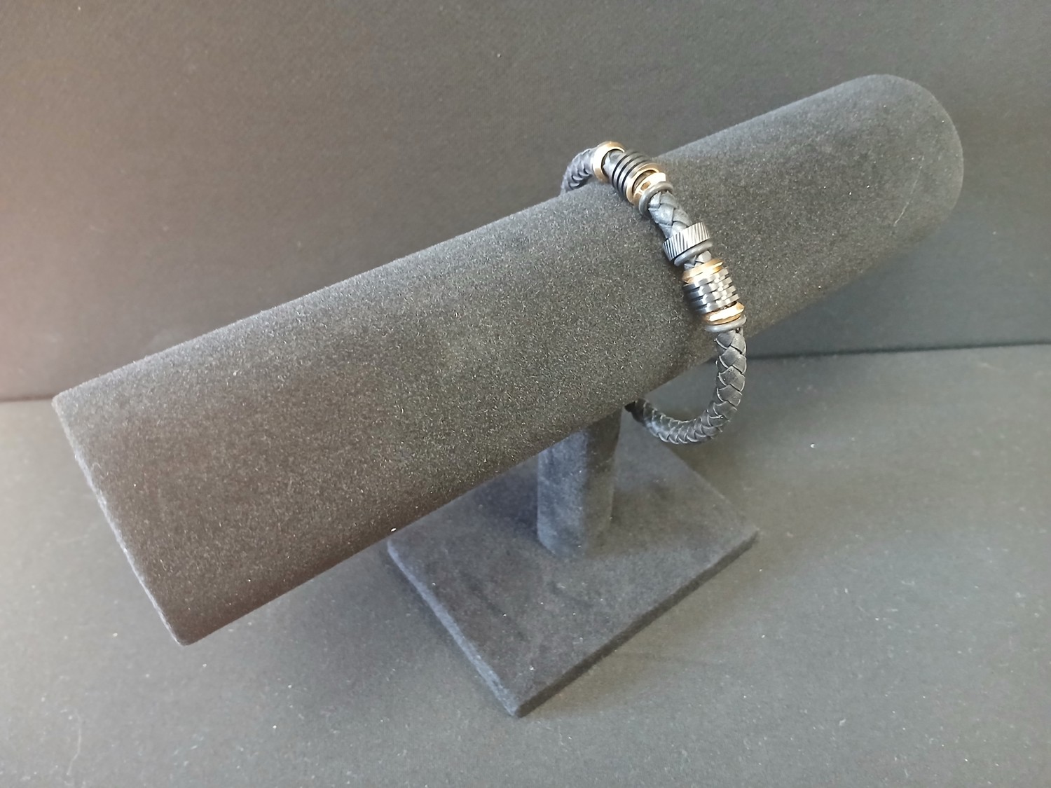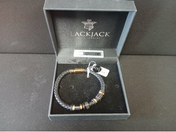 Black Jack Men's Genuine Leather and Stainless Steel Bracelet (Unused)