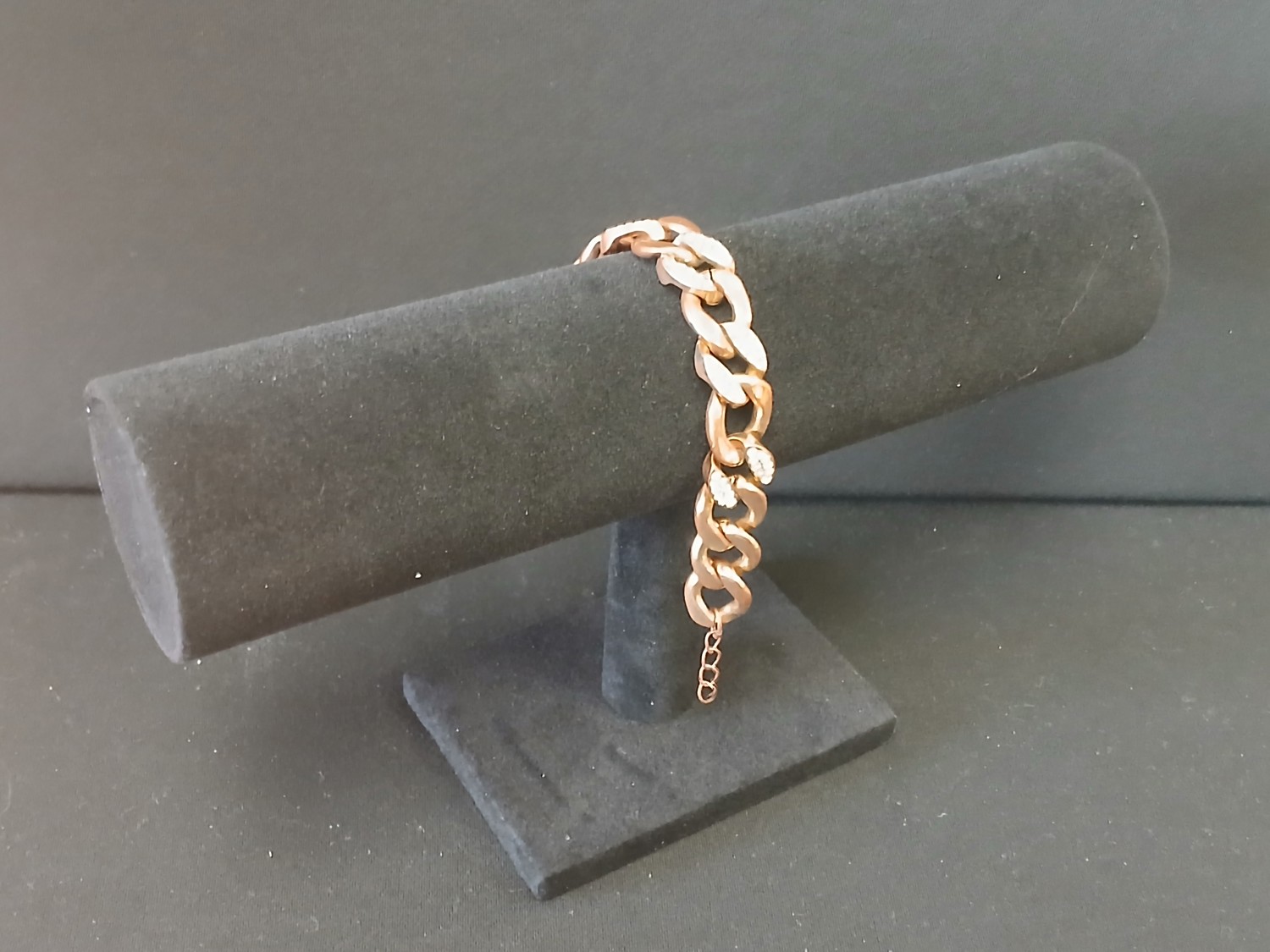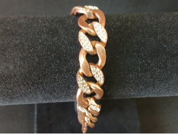7 inch length, Rhinestone detailing on links. clasp replacement required.