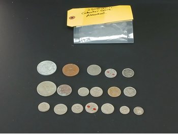 (18) coins and collectable tokens. Both sides of all currency, and tokens in pictures.