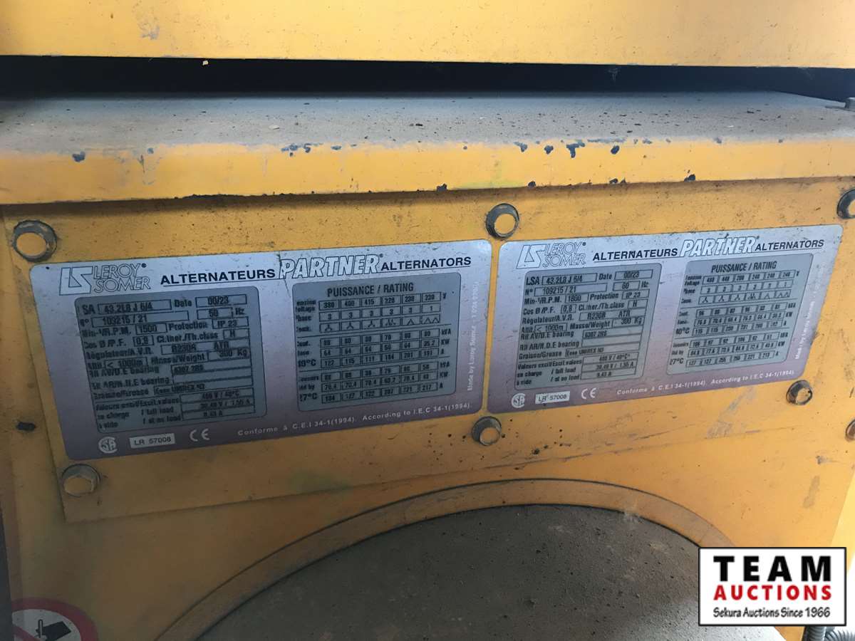 John Deere Power Tech 4.5L engine, Leroy Somer generator, shows 9128 hrs