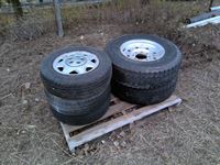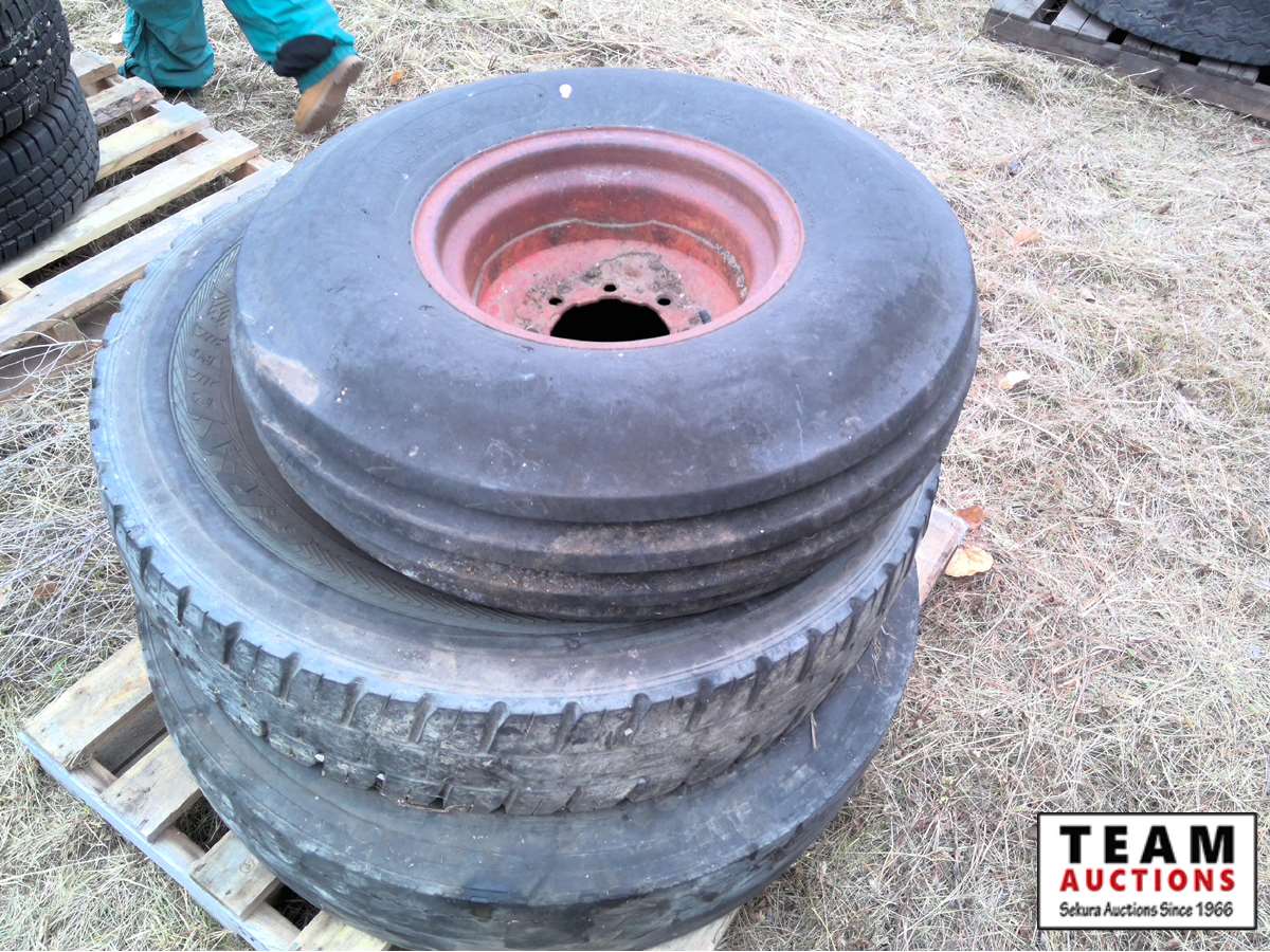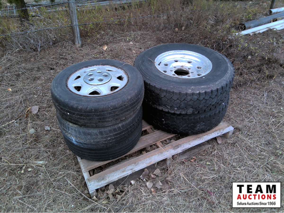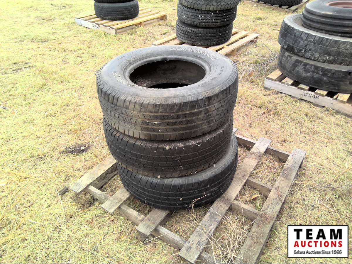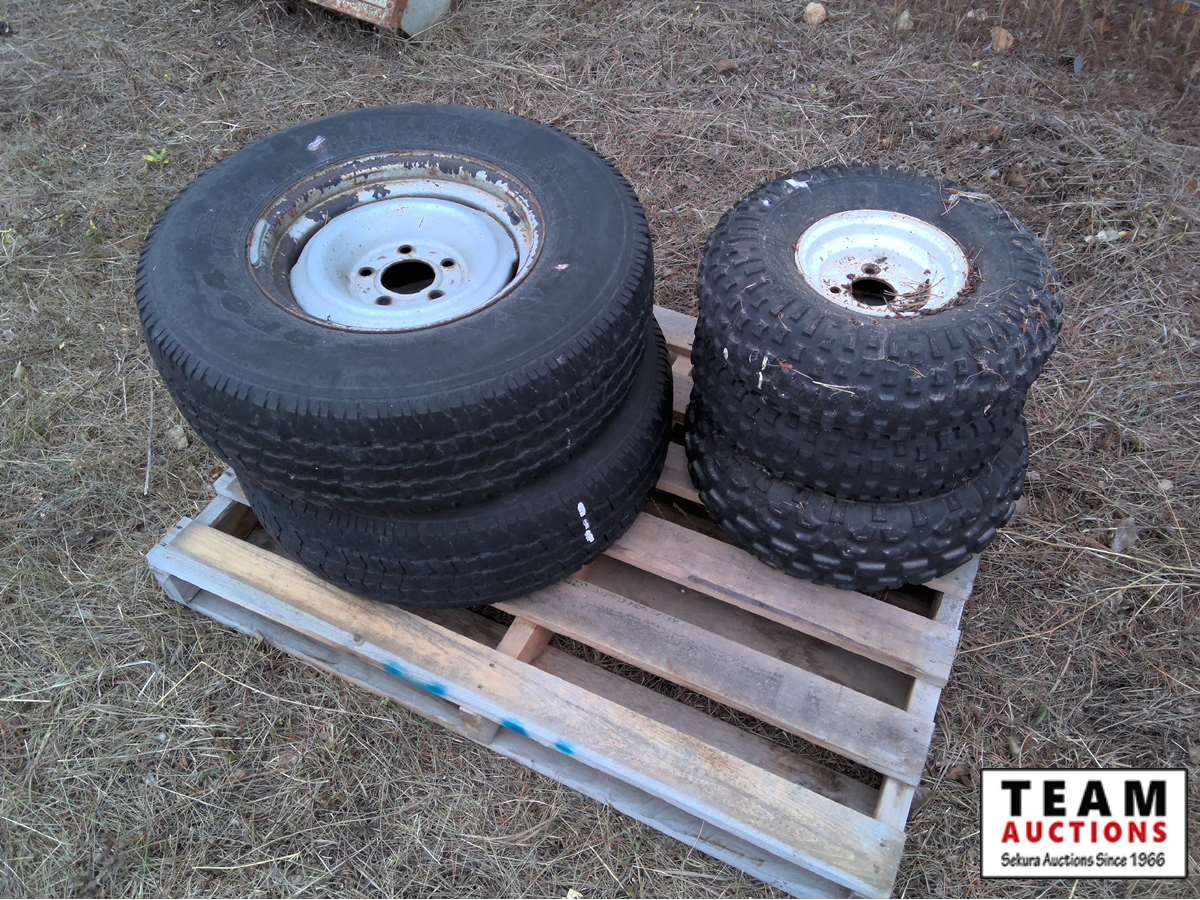 (5) 245/75R16 with rims, (3) misc tires, (3) quad tires (2) with rims, (3) 235/85R16 with rims, (2) misc tires with rims, (3) 265/R7017 tires,
