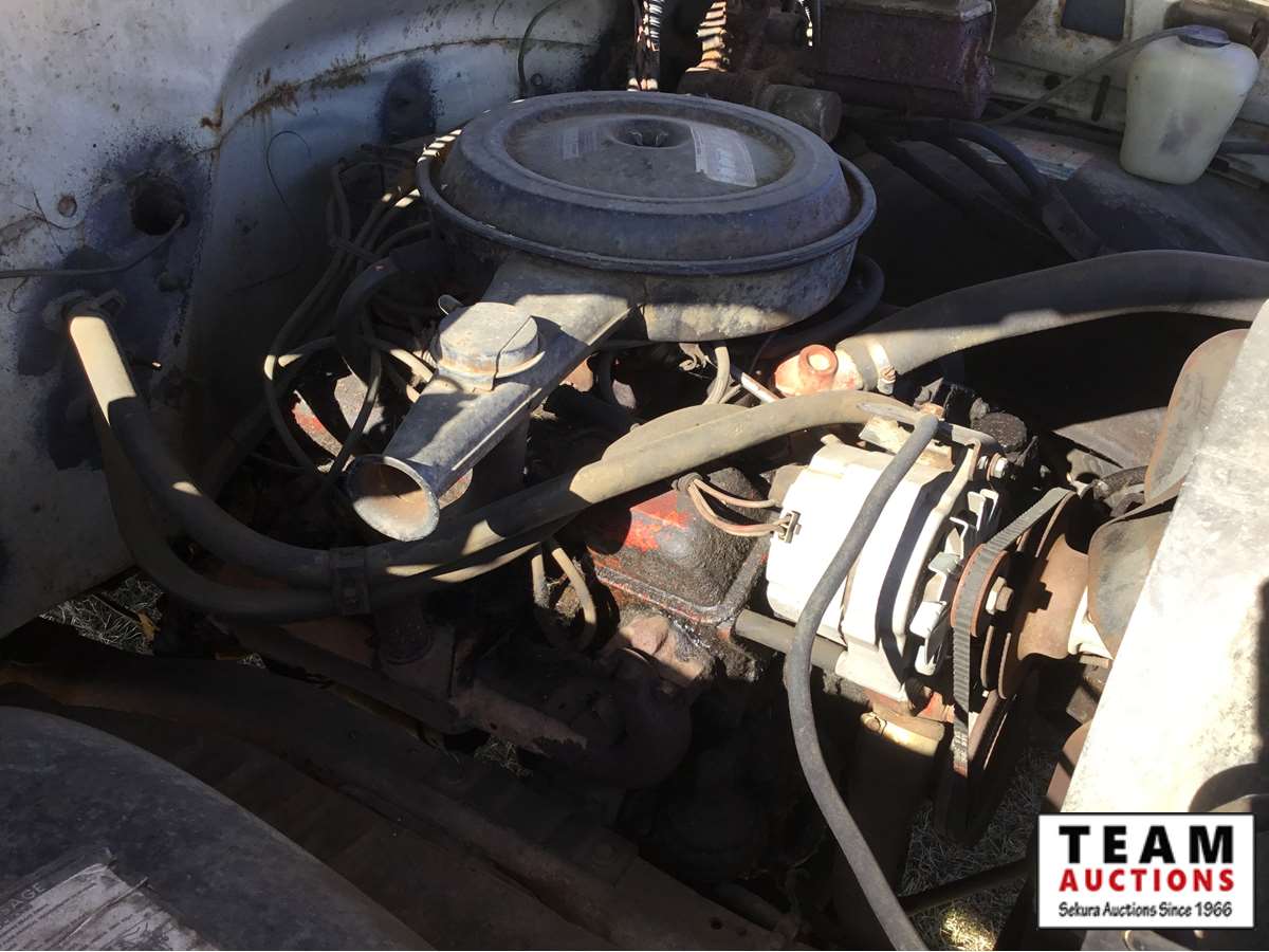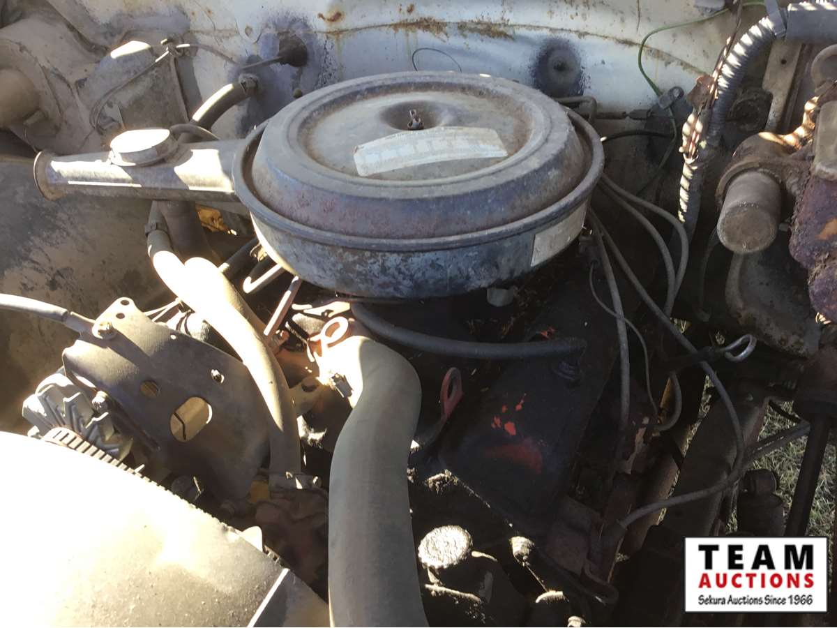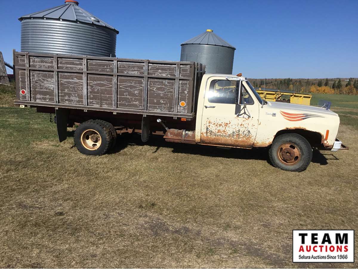 V8 gas engine, 4 speed transmission, wood box, hoist, Alberta registered (have copy of last registration on hand)