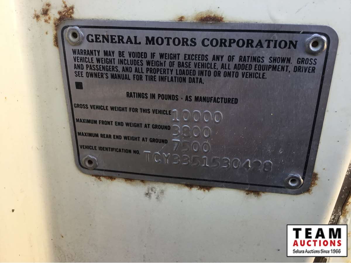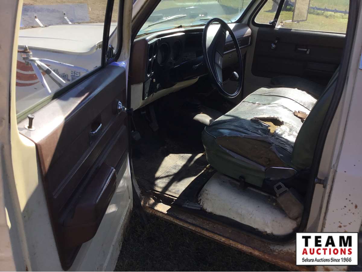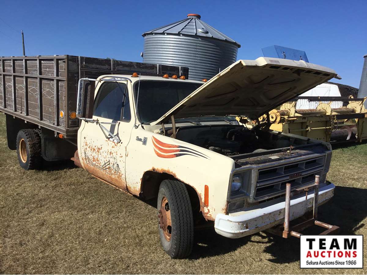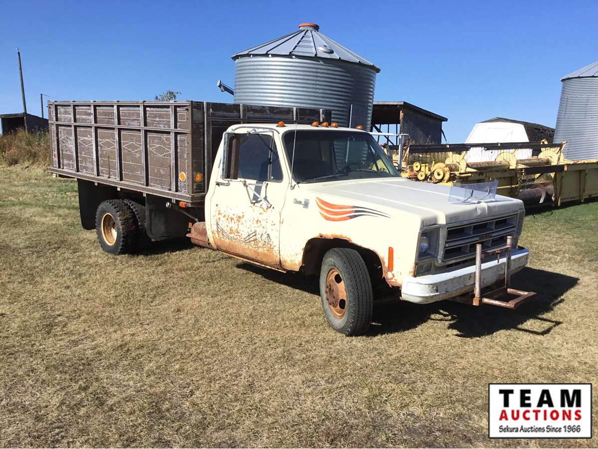 V8 gas engine, 4 speed transmission, wood box, hoist, Alberta registered (have copy of last registration on hand)