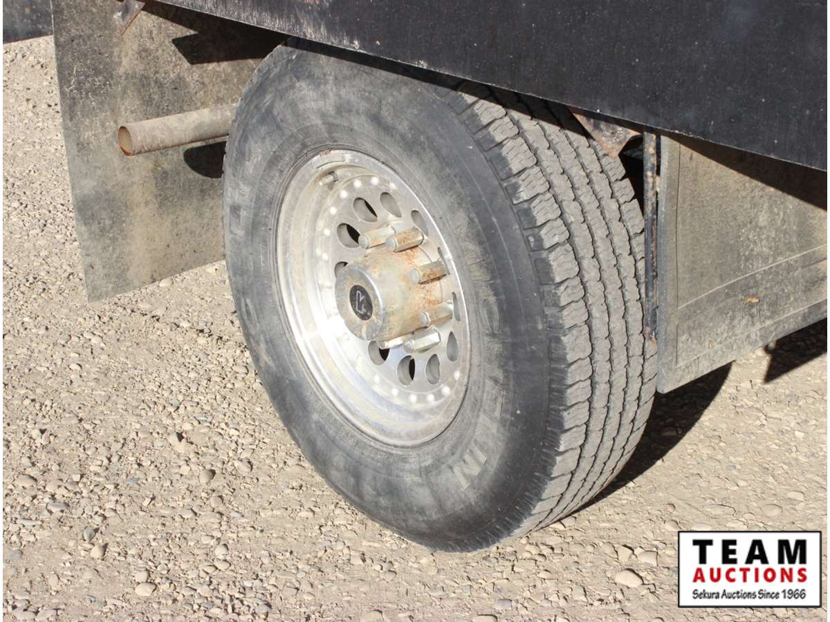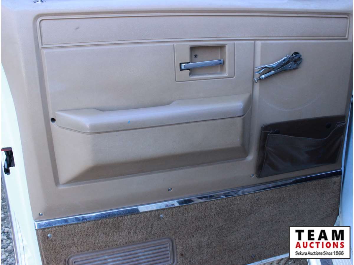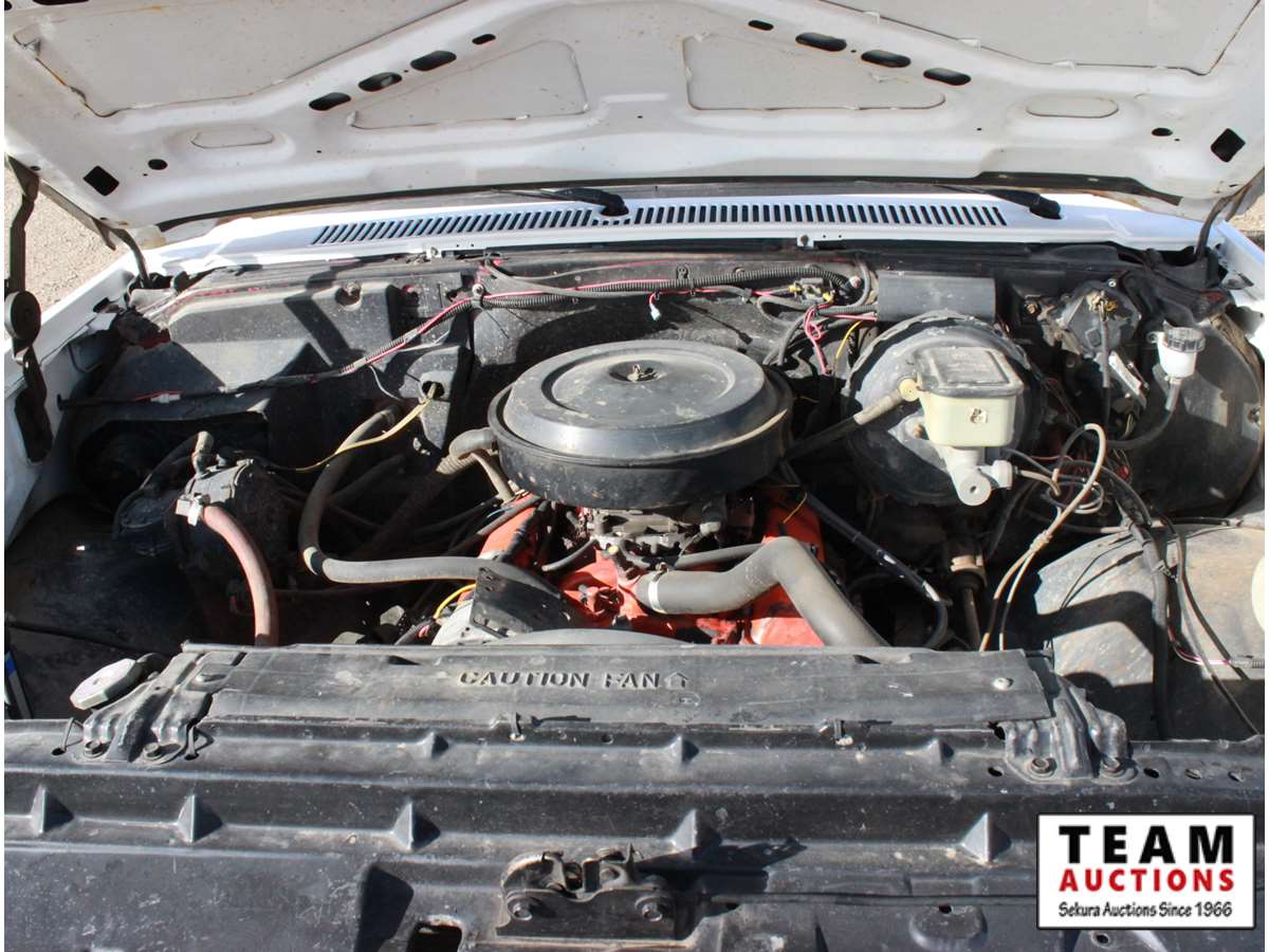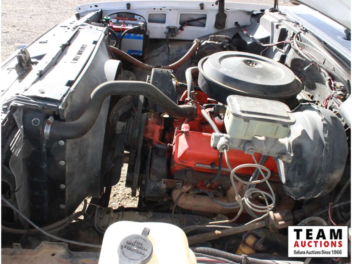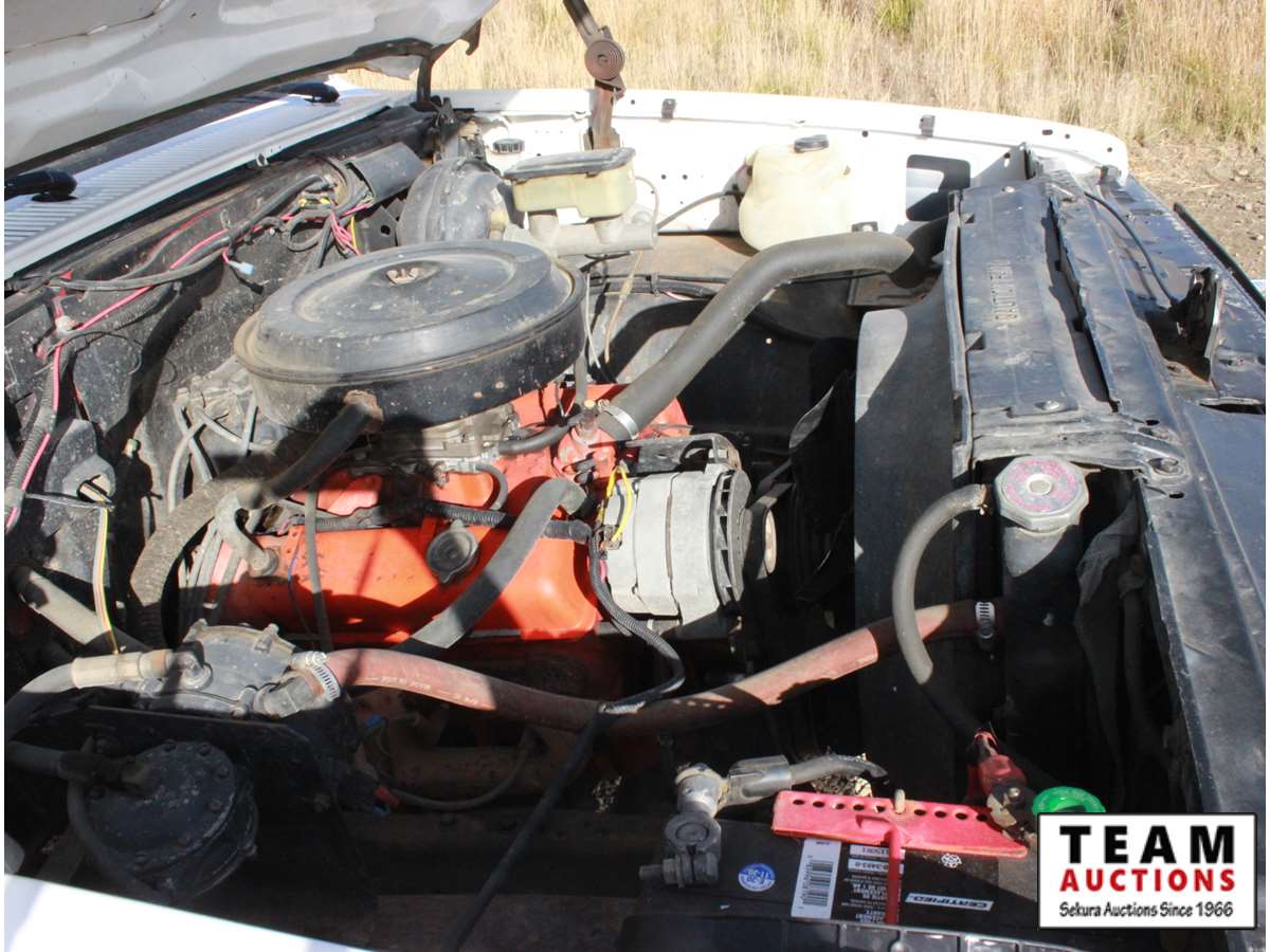 350 V8 engine, 4 speed standard transmission, runs only on propane, outside locking hubs, flat deck with folding sides, newer deck boards, rear air bags, shows 20,025 kms