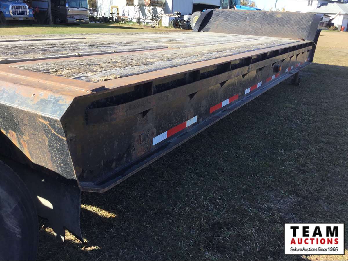 spring ride, beaver tails, side rub rails, wide load lights, 9' wide deck, real good floor, good paint, 11R22.5 rubber, Alberta registered