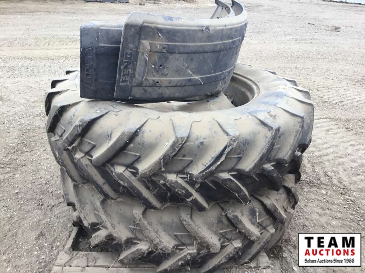 582 (2) 14.9R34 Tires & Rims, (2) Tractor Front Fenders