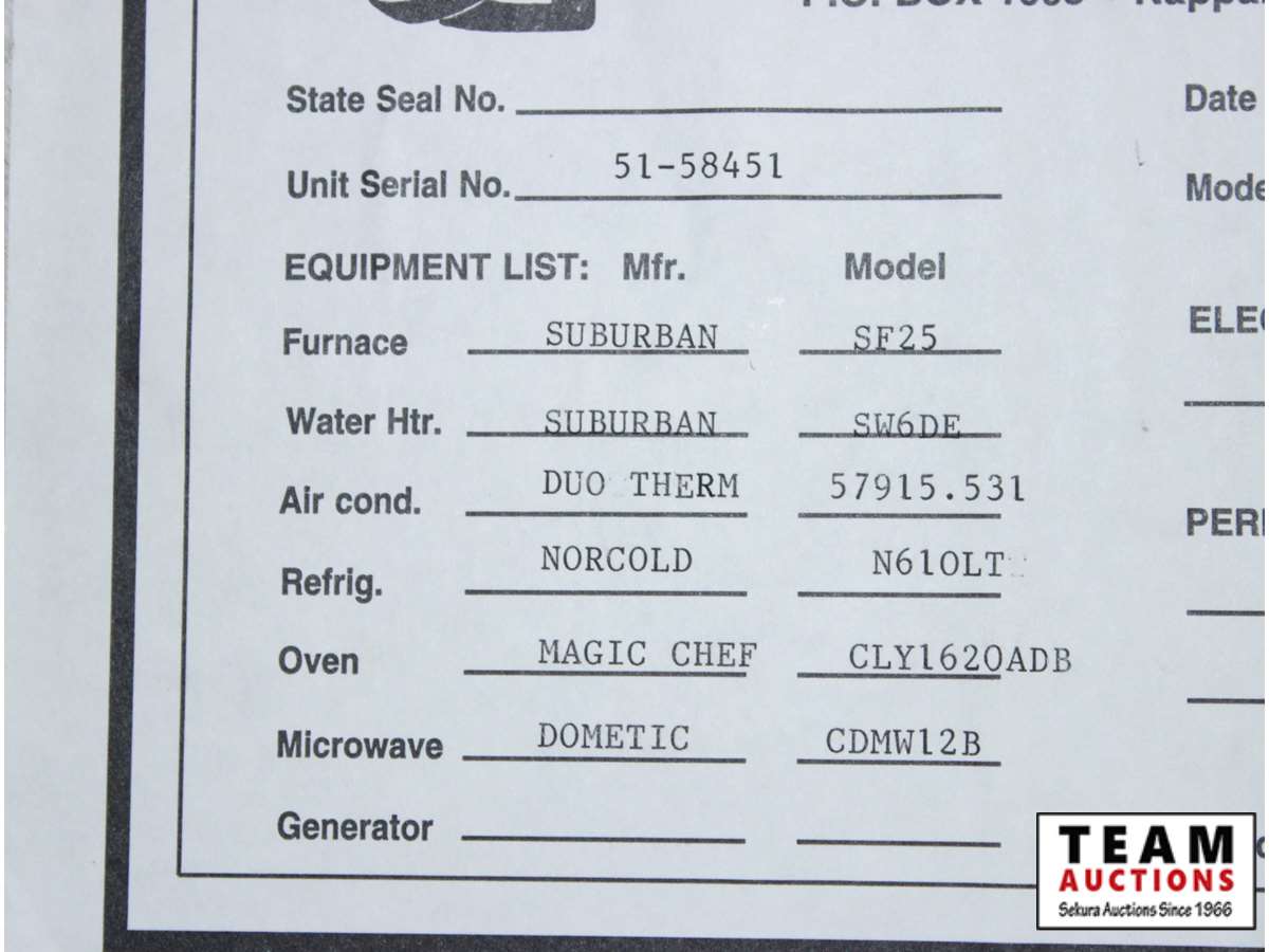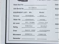 1 slide out, water heater, furnace, Duo Therm air, microwave, Norcold fridge, Magic Chef oven,master bed, 2 bunks, 205/75R15 rubber, 110V, 30A