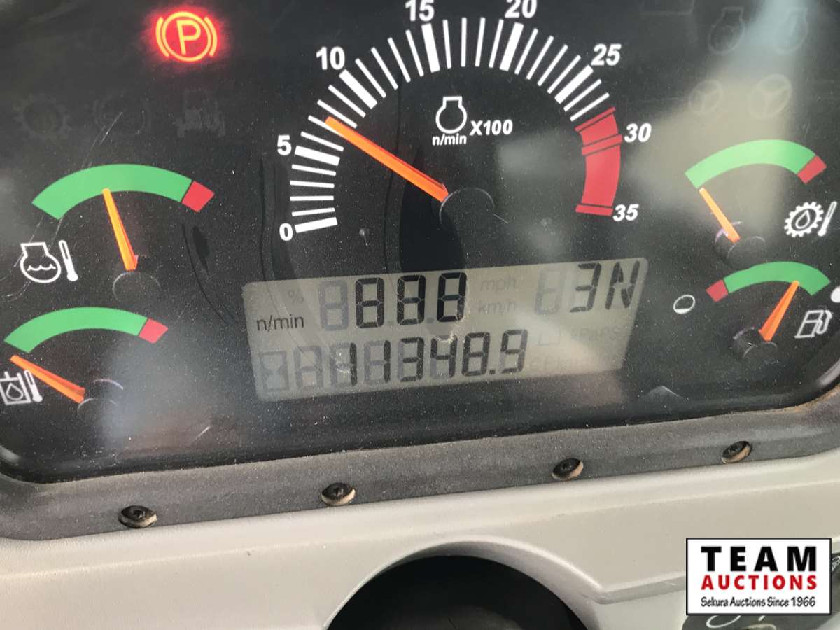 front decking blade, cab, A/C, dual hydraulic function, with tire chains, new batteries, 11,349 hours