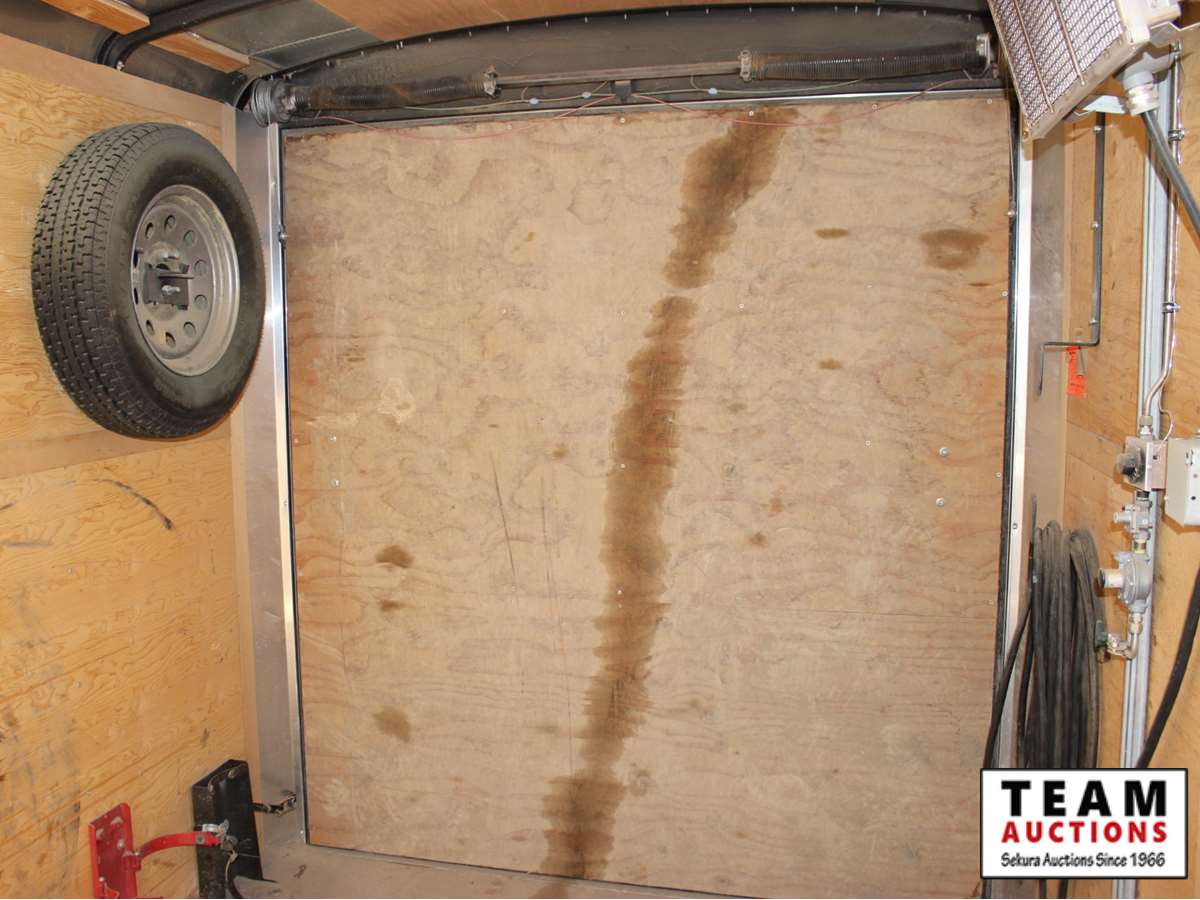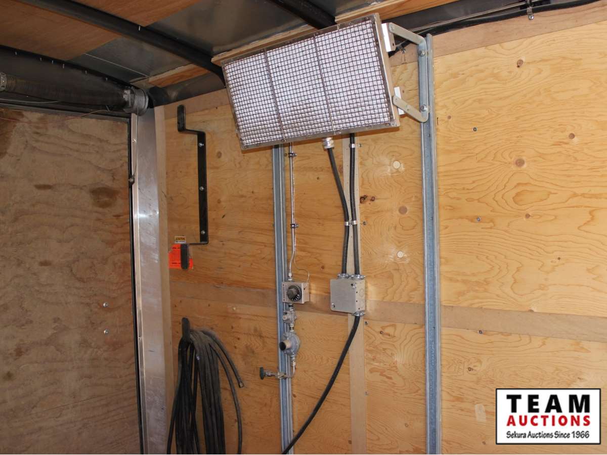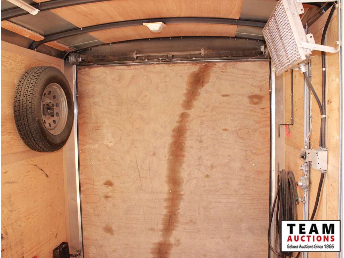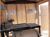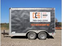 7' wide, 2 5/16' ball hitch, 3500 lb axles, curb side man door, rear fold down door, spare 205/75R15 rubber, propane heater, bench with vise, poly tank with 2" electric pump, (2) Flo Pro 9100 Flow Totalizer ratemeters