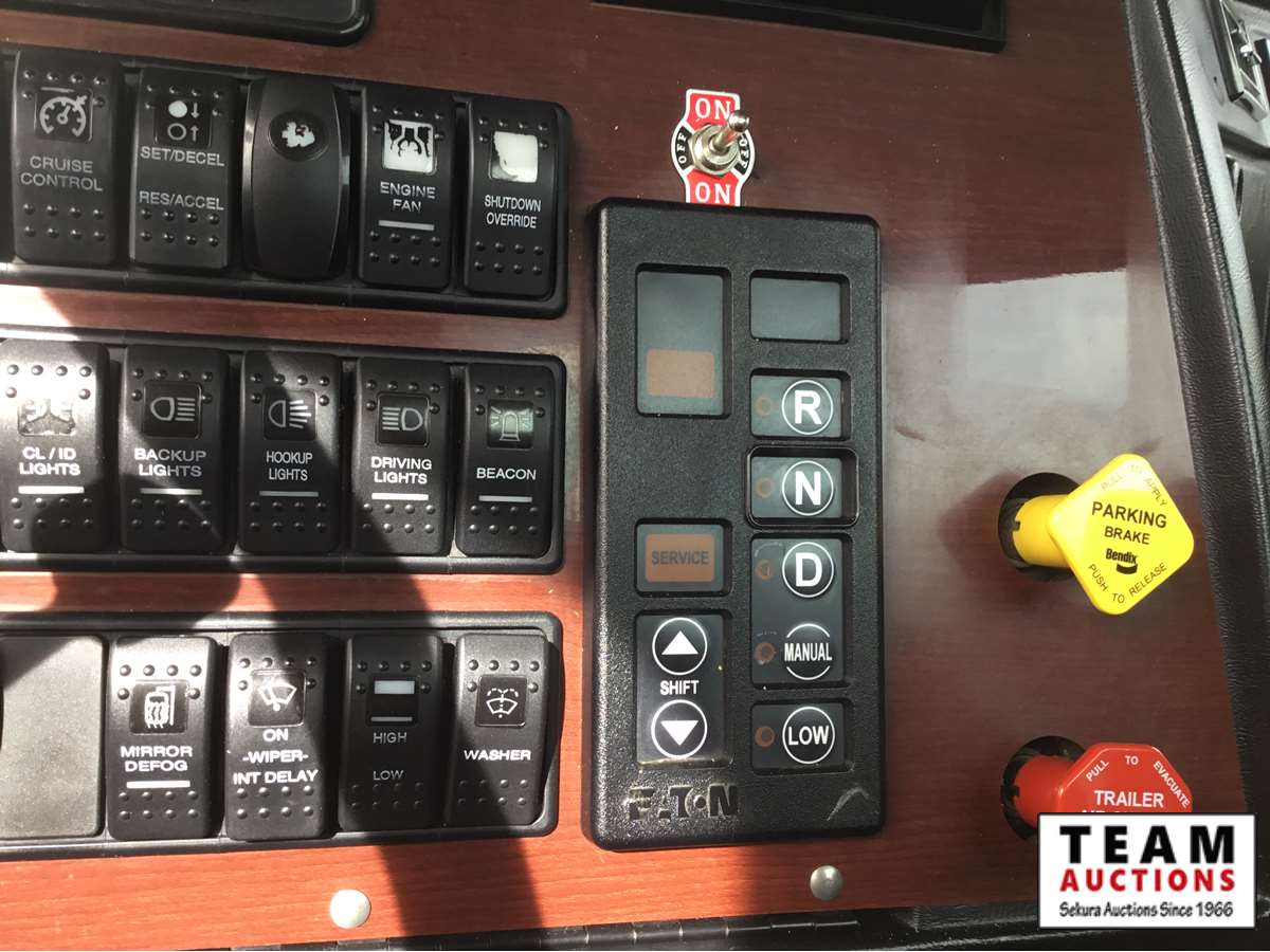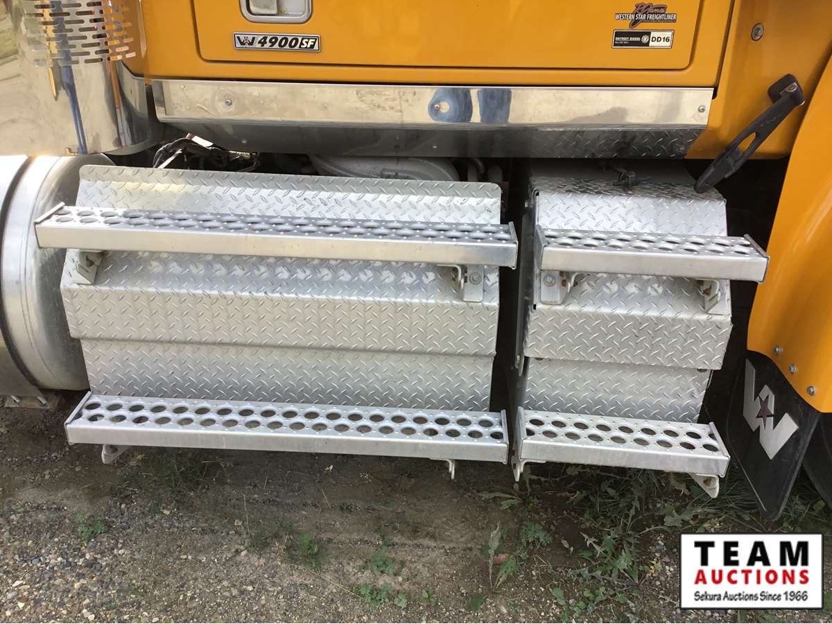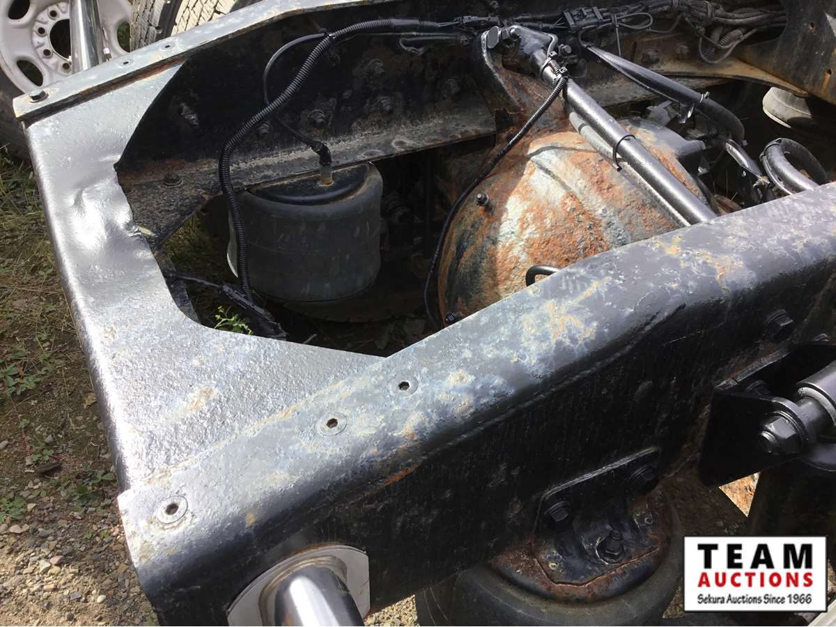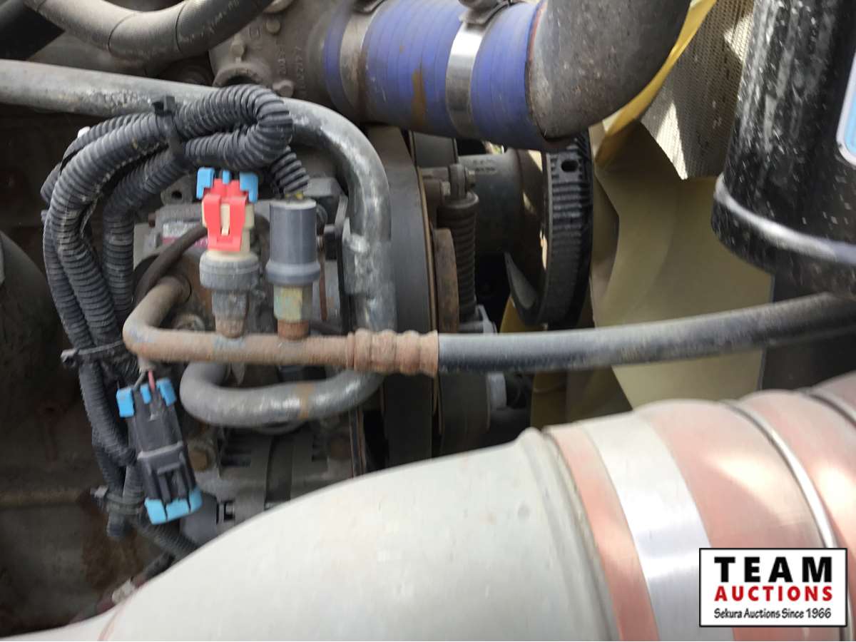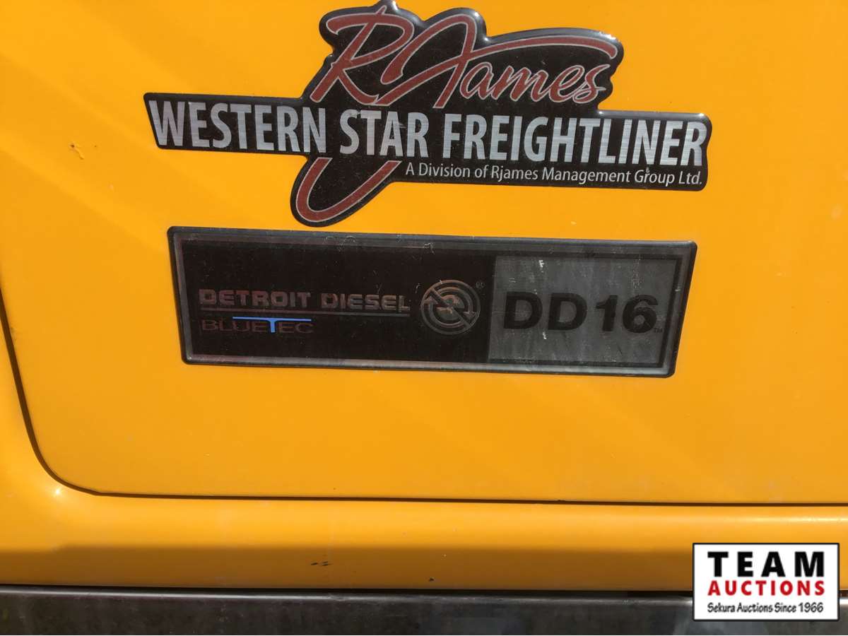Detroit DD-16 engine (not deleted), Fuller 18 speed Auto Shift transmission, air ride suspension, 1,200 lb front axle, 46,000 rears, 4 way lockers, 208" wheel base, 11R22.5 rubber, aluminum rims, 736,200 miles, 20,450 engine hours, Alberta registered, no current CVIP