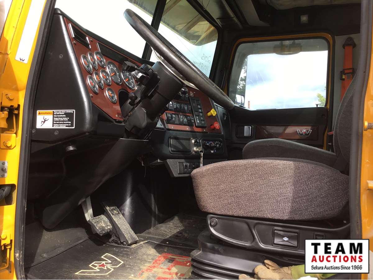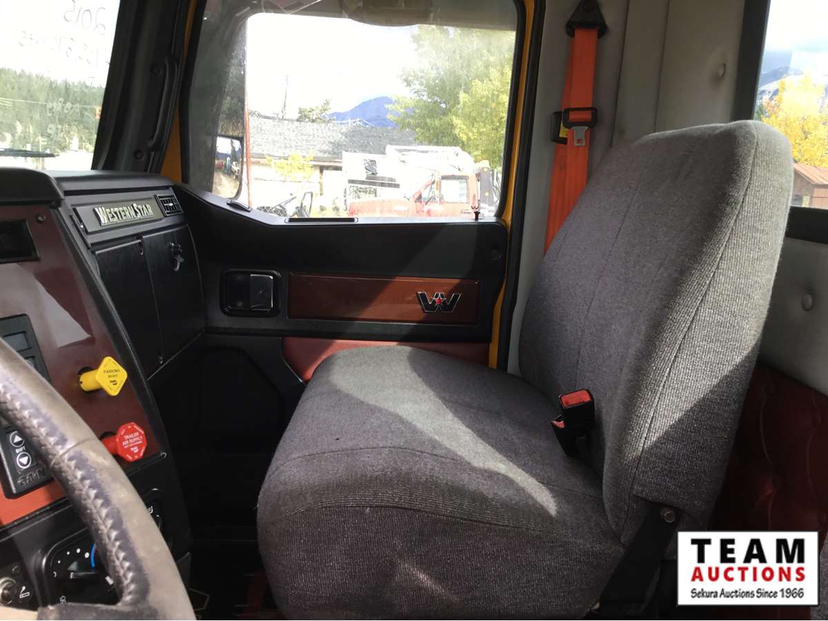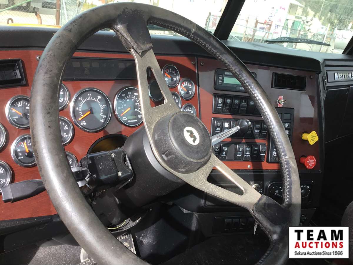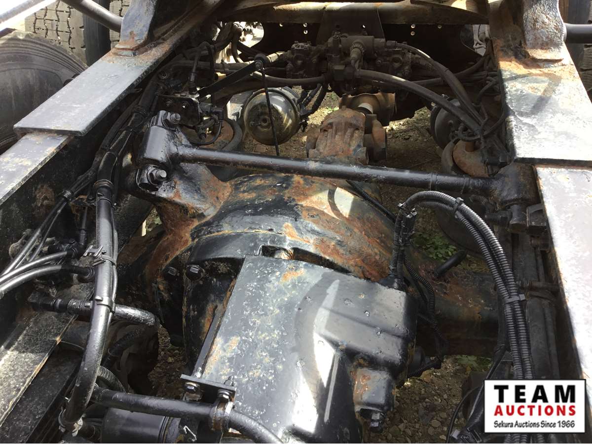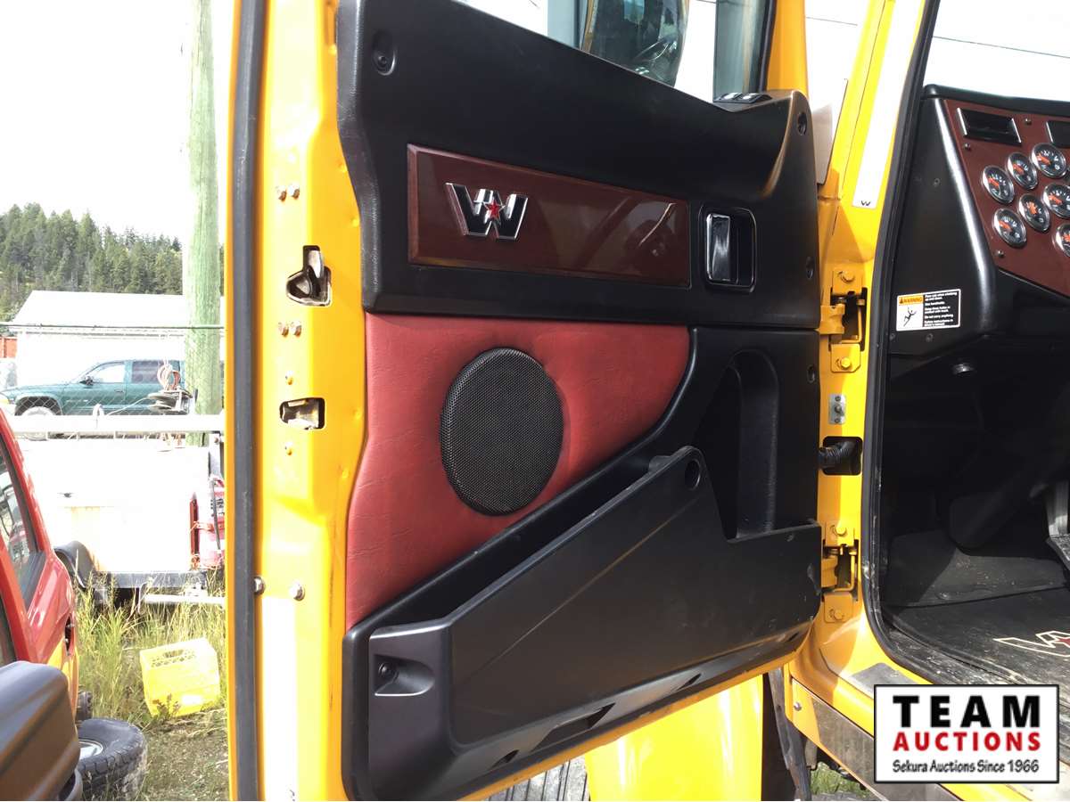 Detroit DD-16 engine (not deleted), Fuller 18 speed Auto Shift transmission, air ride suspension, 1,200 lb front axle, 46,000 rears, 4 way lockers, 208" wheel base, 11R22.5 rubber, aluminum rims, 736,200 miles, 20,450 engine hours, Alberta registered, no current CVIP