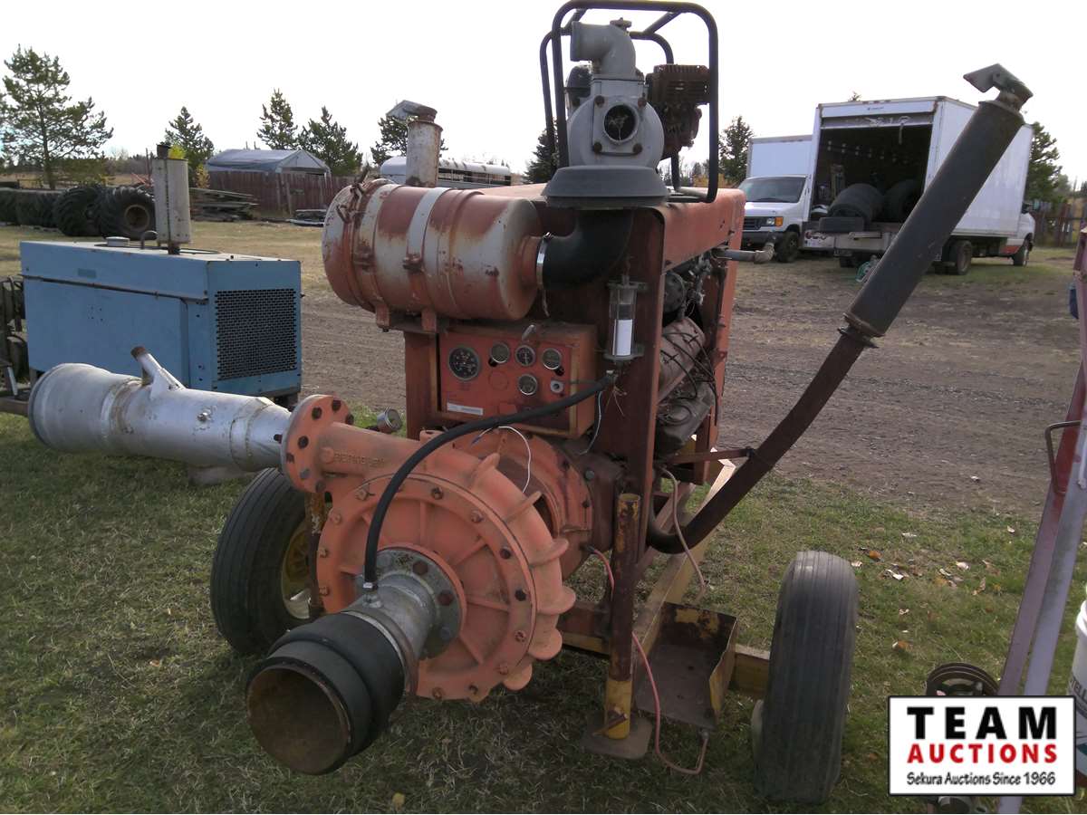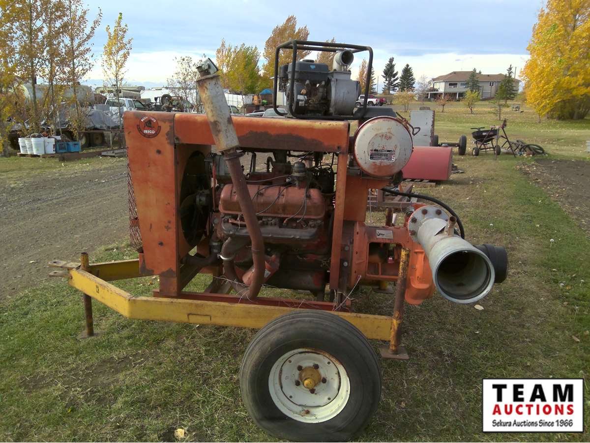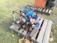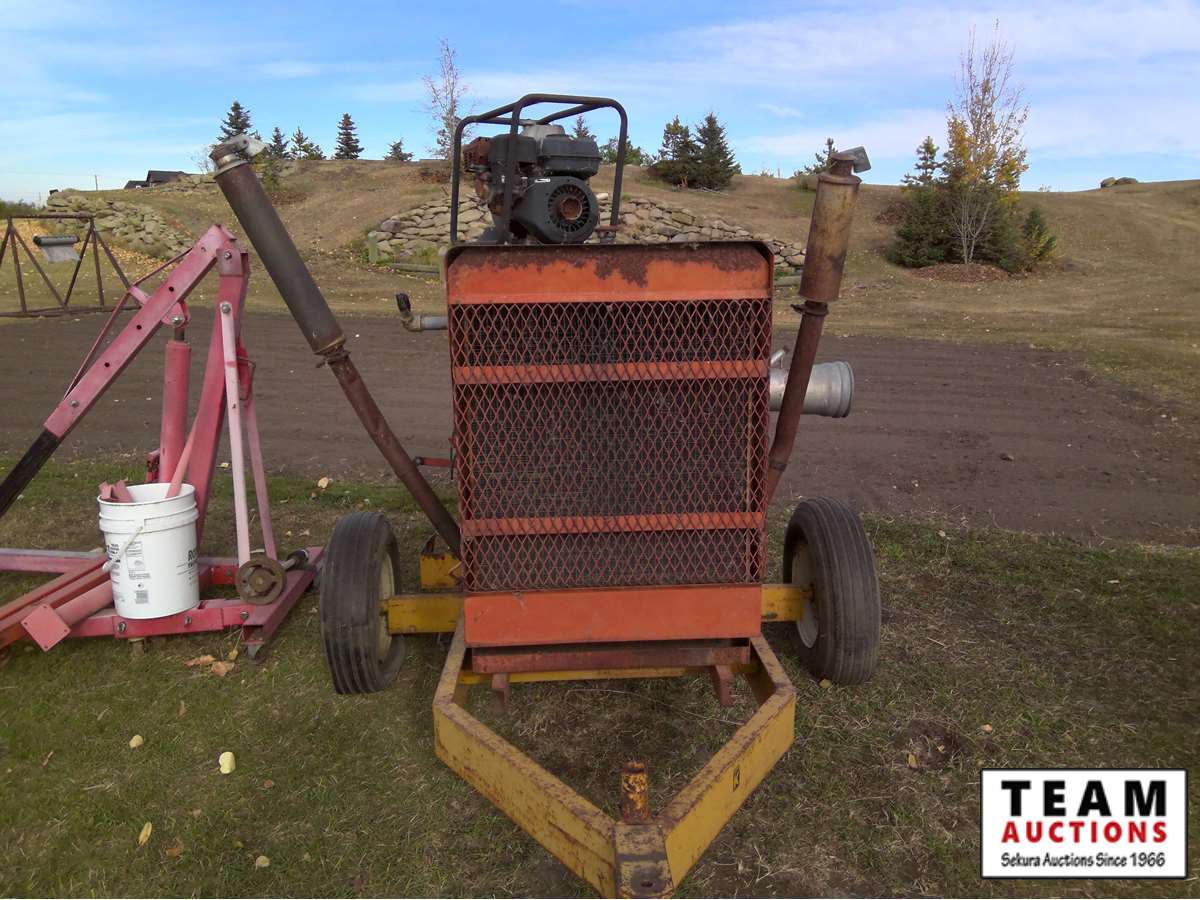 large irrigation pump, (2) small gas pumps, qty of lay flat hose, irrigation pipe