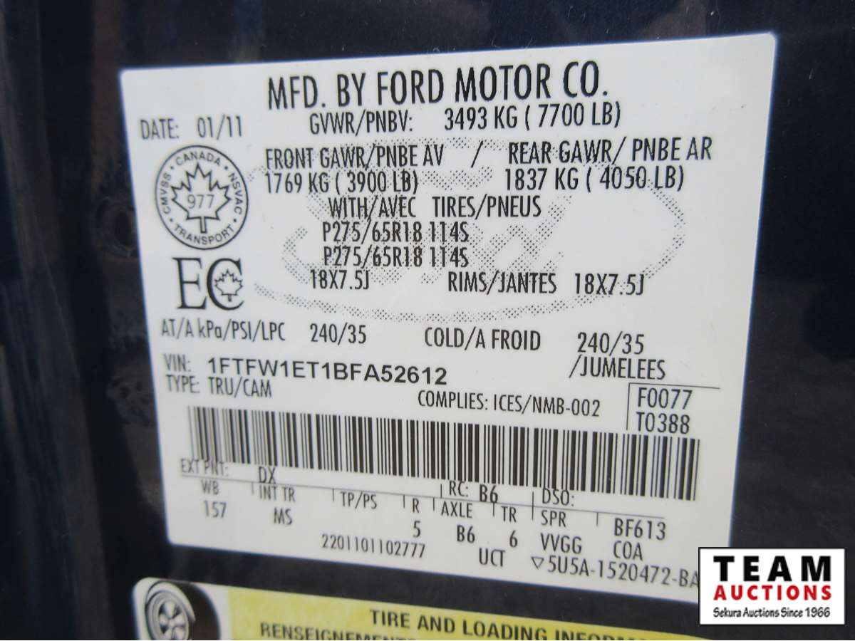 3.5 V6 Eco Boost engine, automatic transmission, PW, PL, AC, cloth interior, running boards, 275/65R18 rubber, 311,741 kms, Alberta registered, have copy of registration