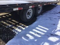 spring ride, 7000 lb axles, 16" rubber, beaver tail with flip up ramps, spare tire, front tool box, Alberta registered
