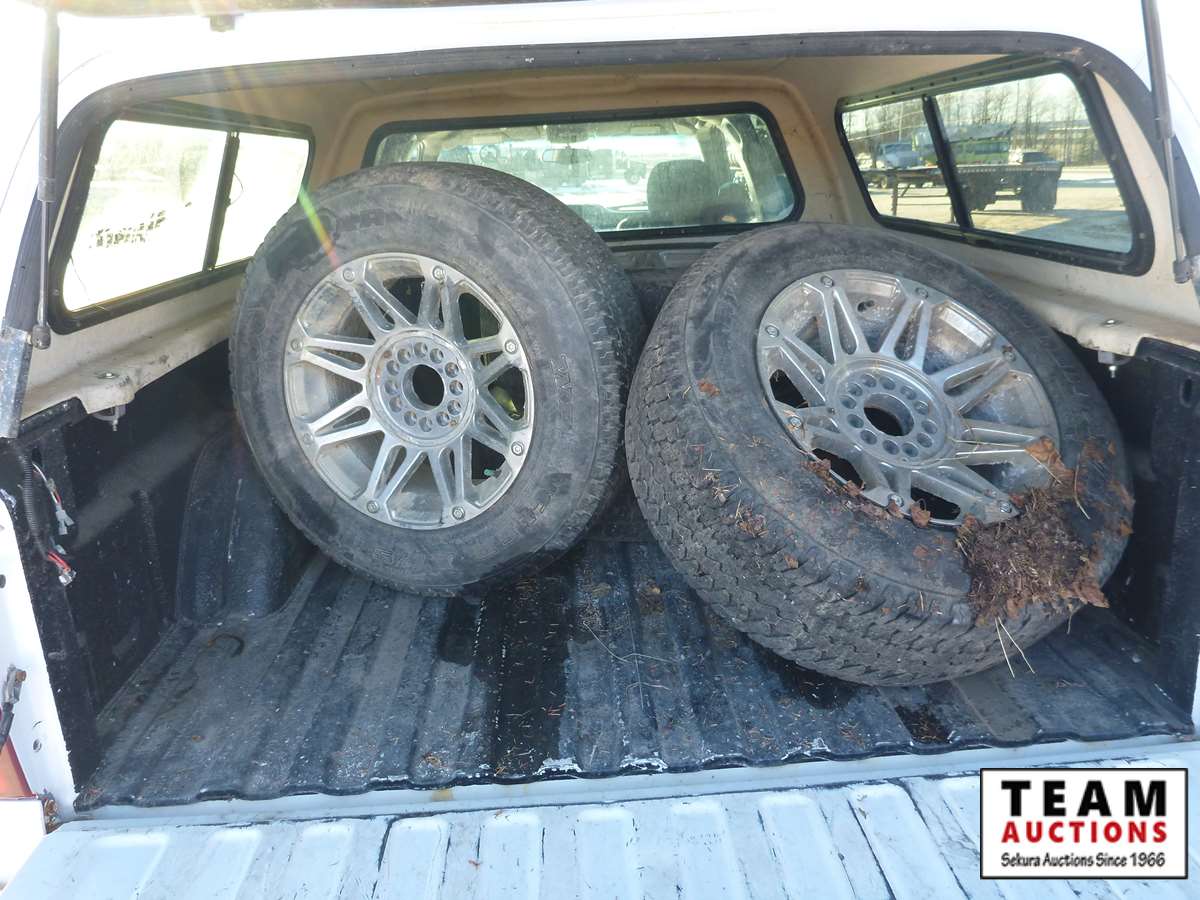 6.0 lt gas engine, power seats, windows, locks , A/C, cruise, canopy, LT265/75R16 tires, 4 extra tires on rims in box, Alberta registered, 353,845 kms