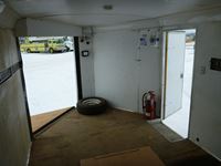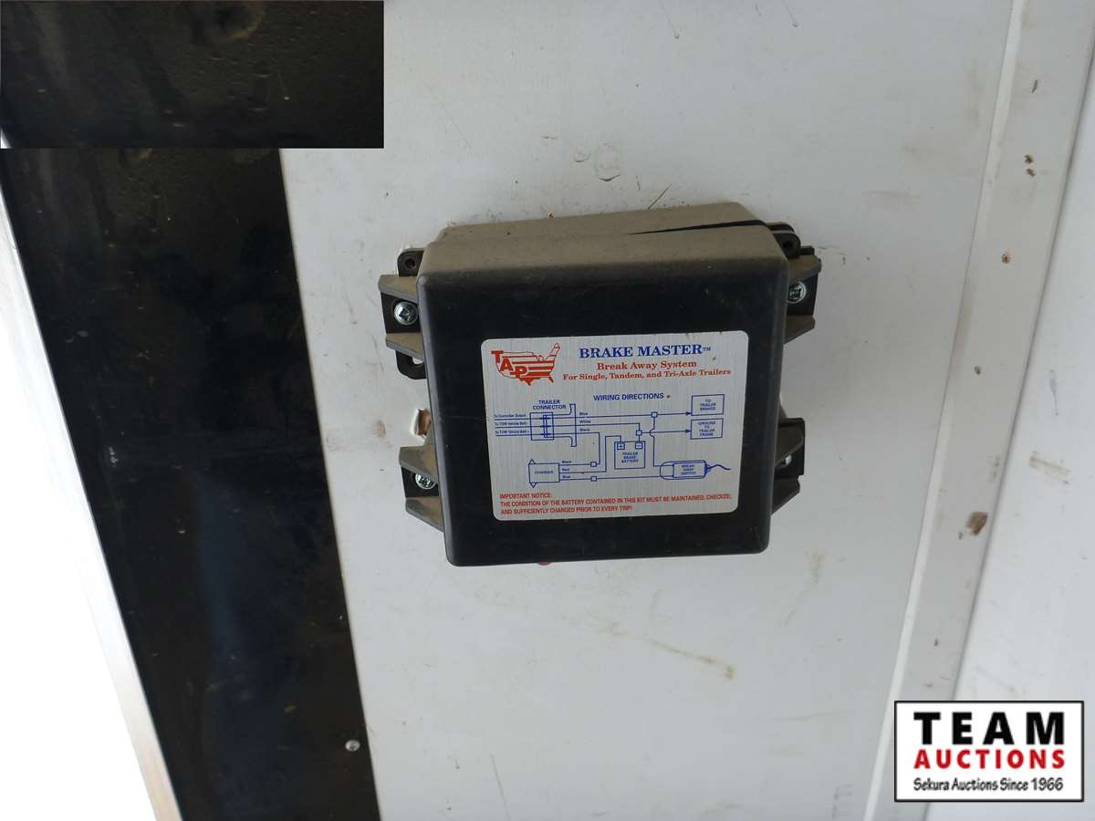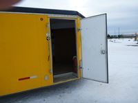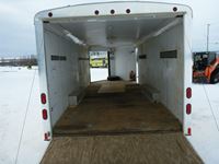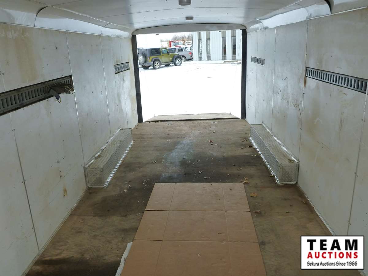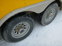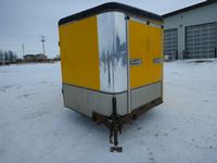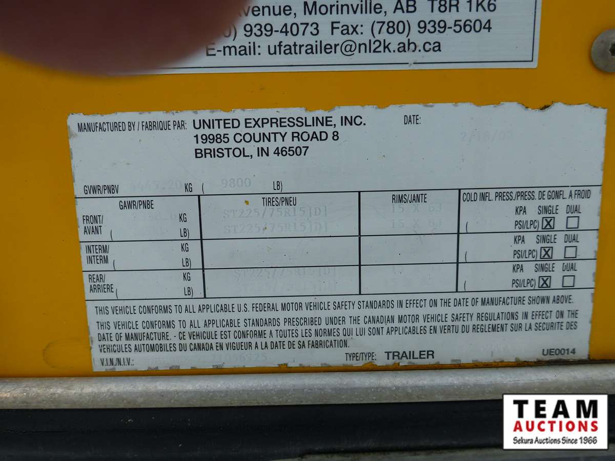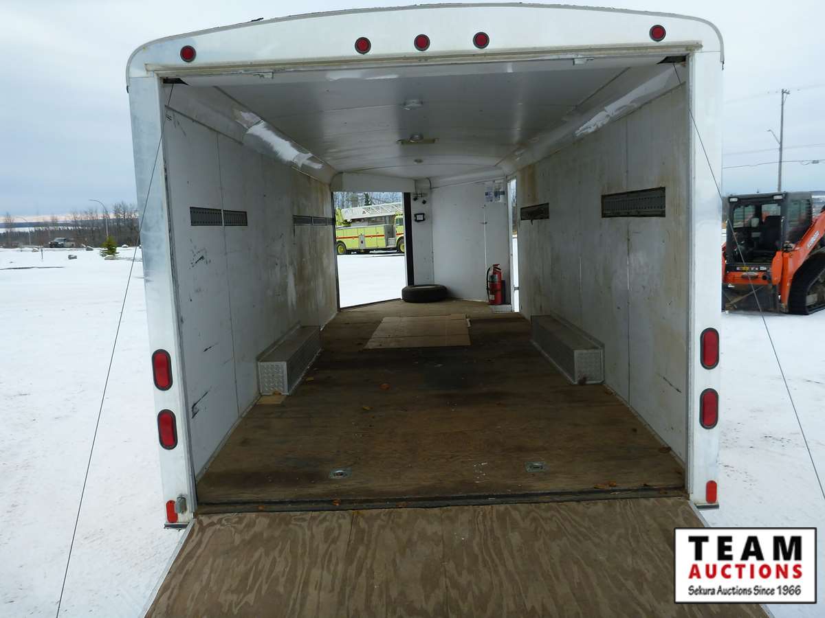 rear fold down door, side entry door, front fold down door, GVW 9800 lbs, 6 bolt axle, 8' 6" width, interior height 6' 8", 225/75R15 rubber, Alberta Registered