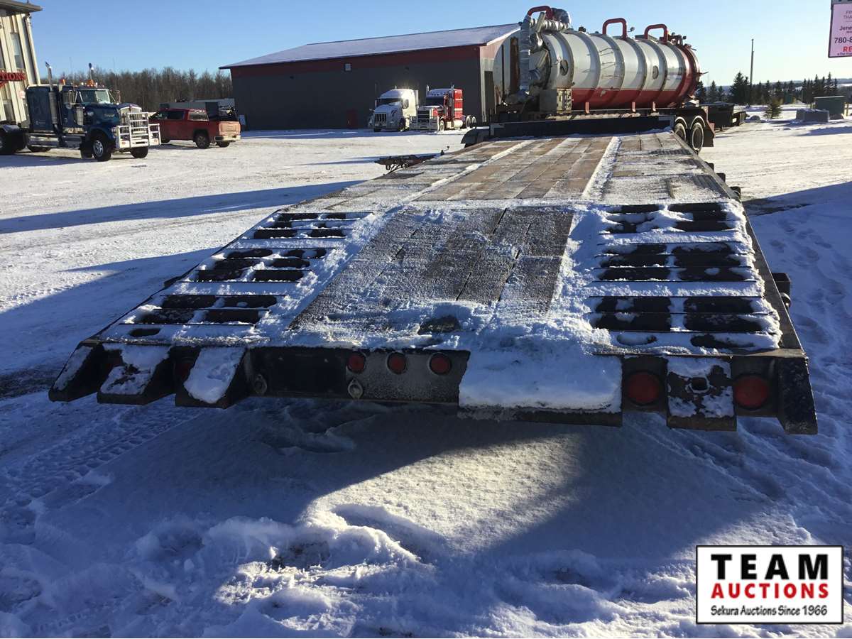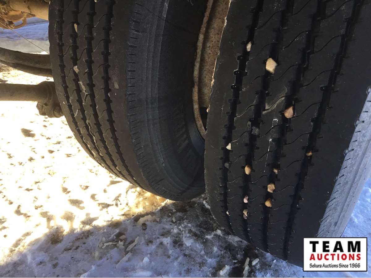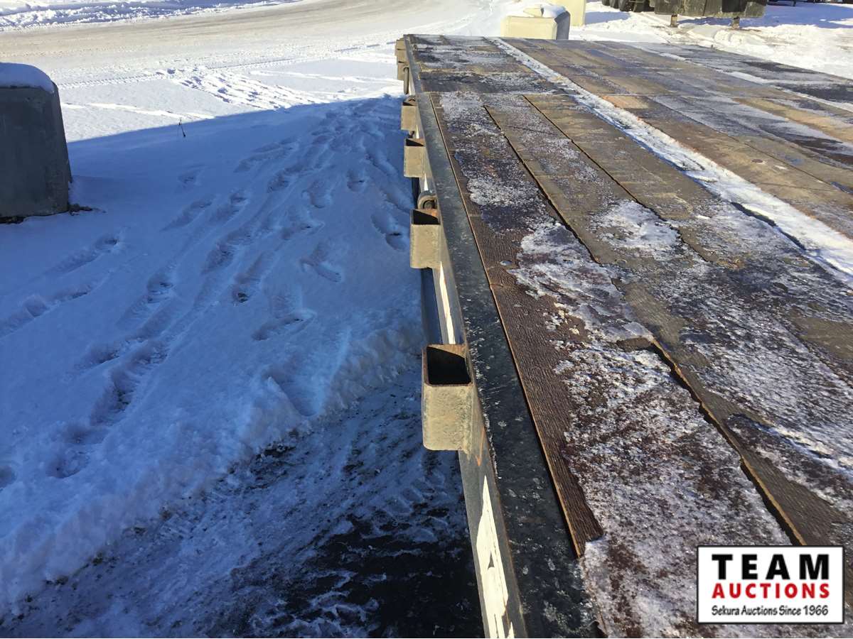 pintle hitch, 8 1/2' wide deck, air tilting deck, rear angle iron non slip beaver tail,, new oak floor, side stake pockets, near new 215/75R17.5 tires, Alberta registered