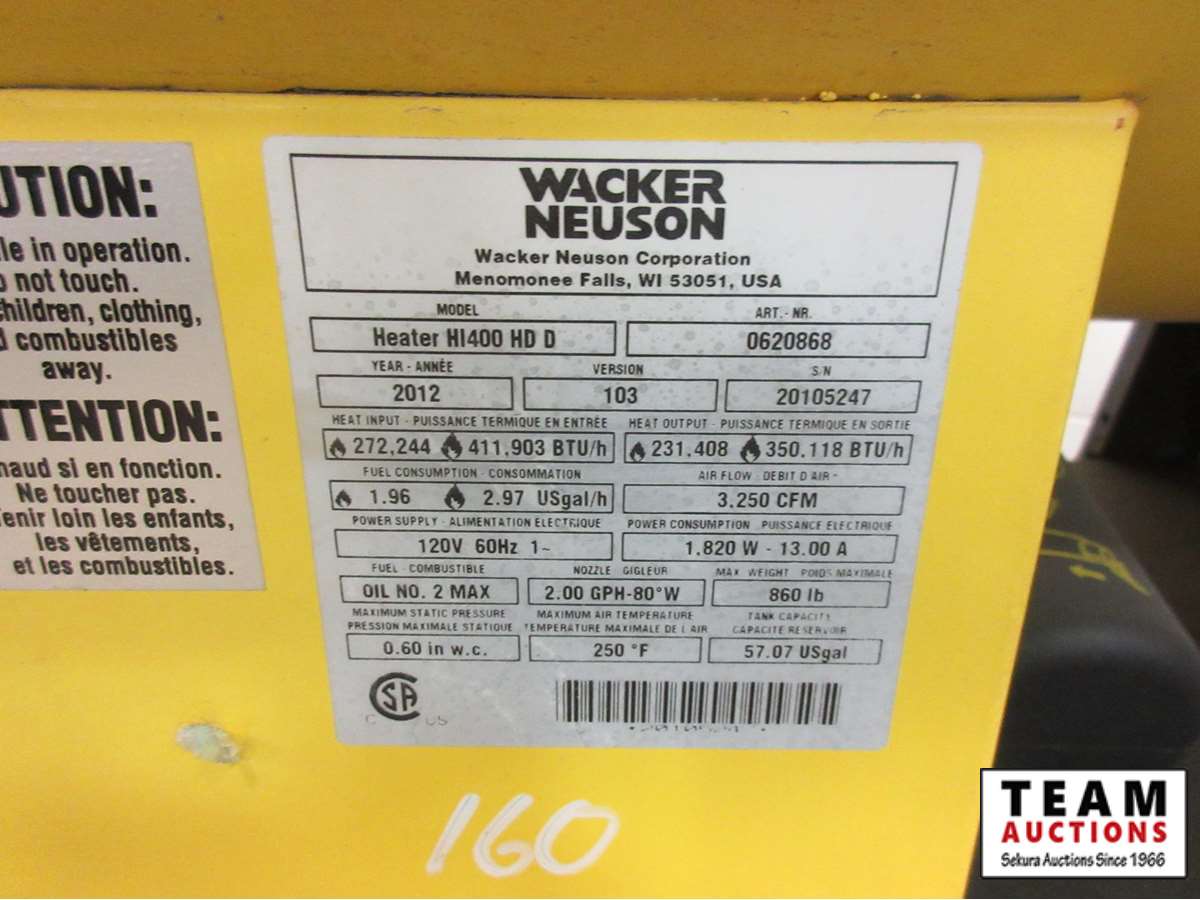 40 2012 Wacker HI400 HD 400,000 BTU Diesel Fired Heater