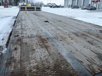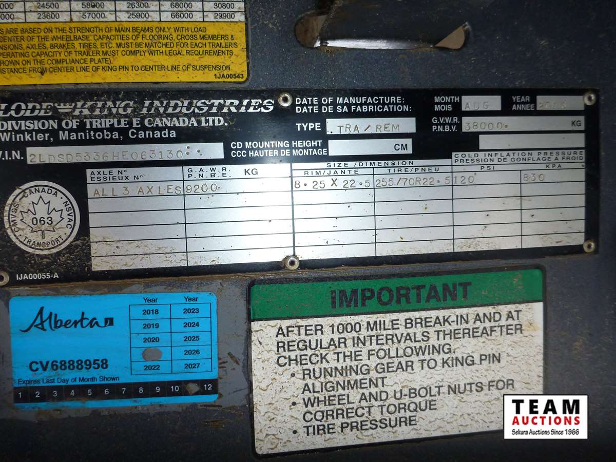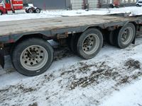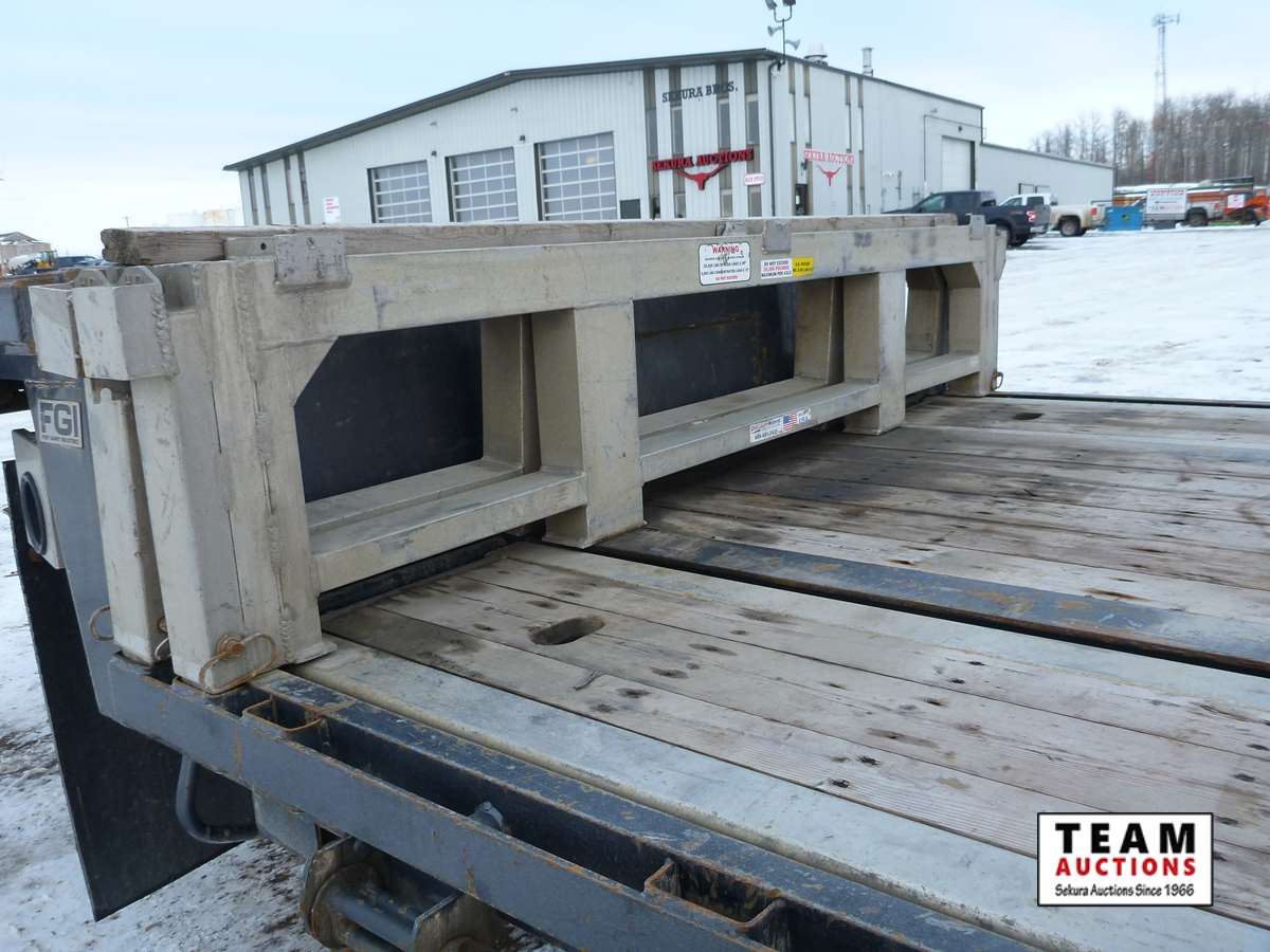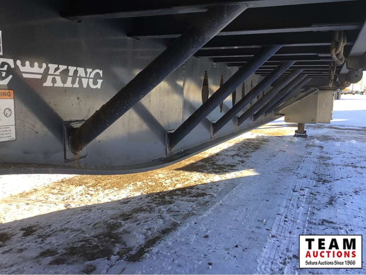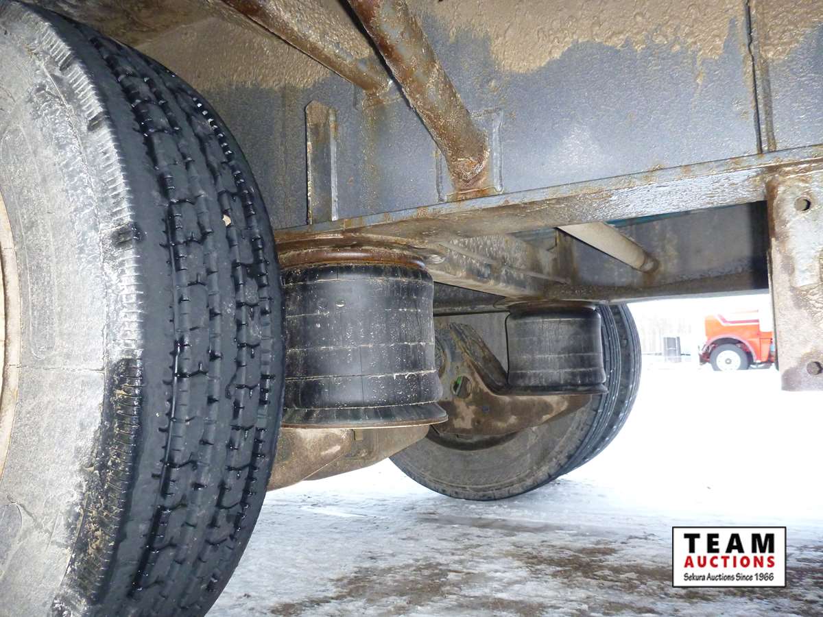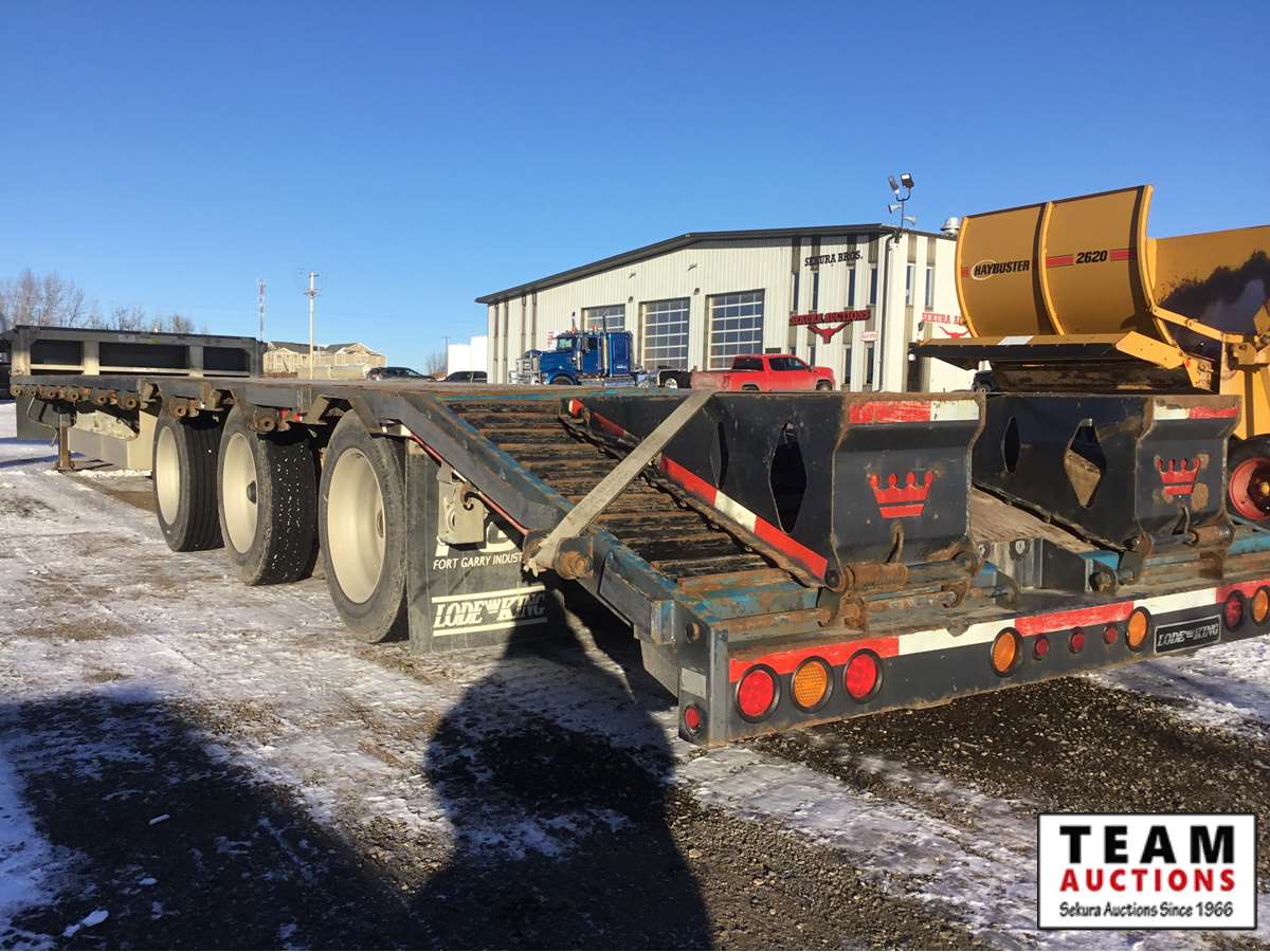 8 1/2' wide, Henderson air ride suspension, rear beaver tail with custom built grouser bars for traction, rear spring loaded ramps for ground loading, rear strobe and side aluminum pull out wide load lights, aluminum tool box, aluminum dunnage rack, floor pull out tie down chains, stake and rub rails, 3-Bar side mounted winch's, extra front mud flap package, (2) aluminum load bunks, rear axle load guage, 255/70R22.5 tires with aluminum rims and auto inflation system, Alberta CVIP just done, Alberta registered