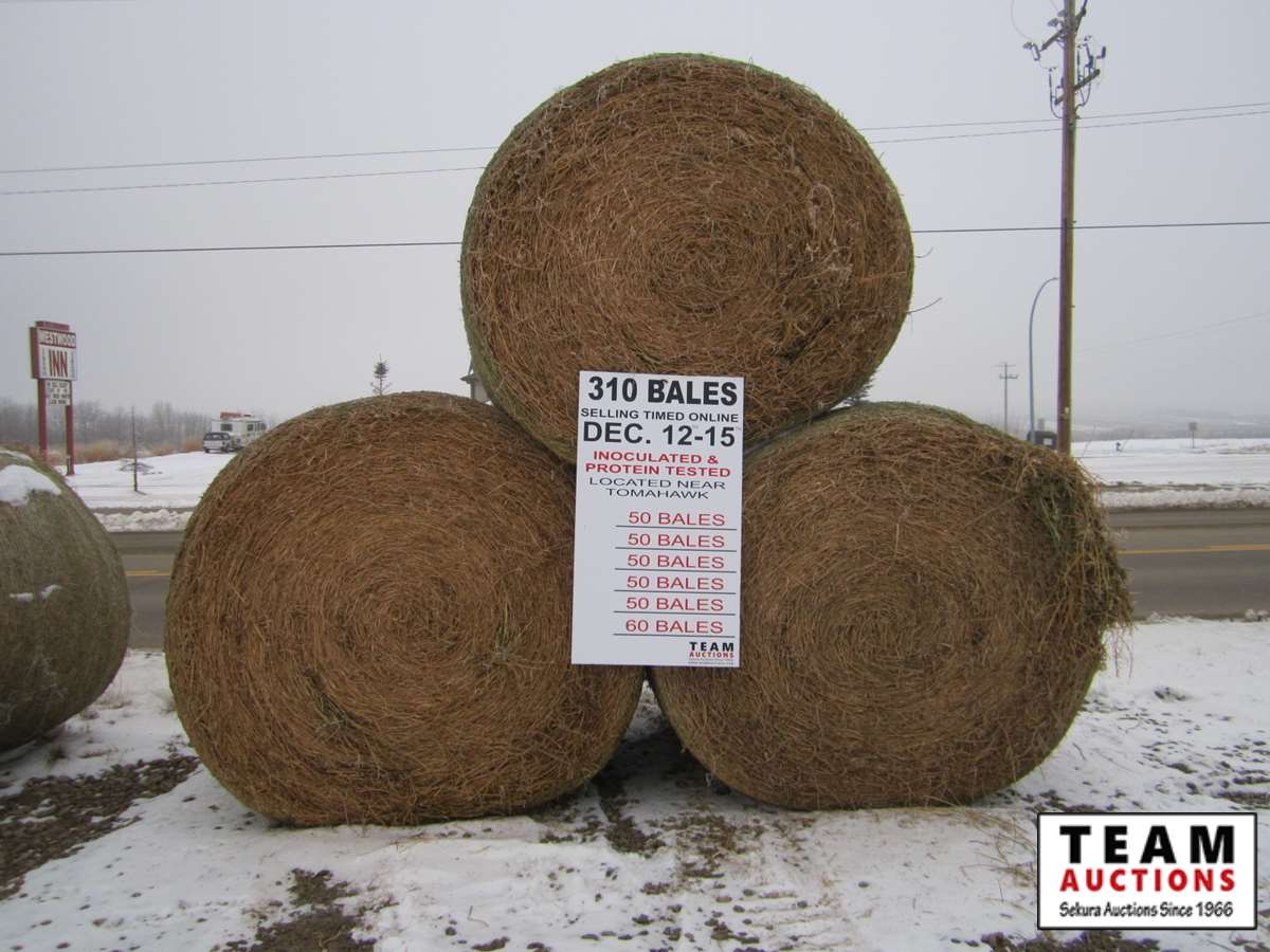 JD net wrapped hay bales weighing approx 1300 lb, crude protein as Fed 13.08% (test in photo gallery), all inoculated