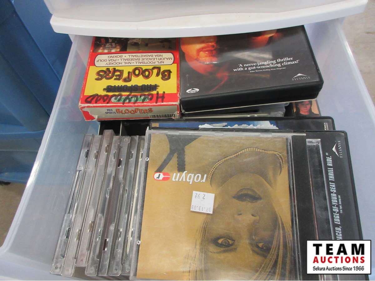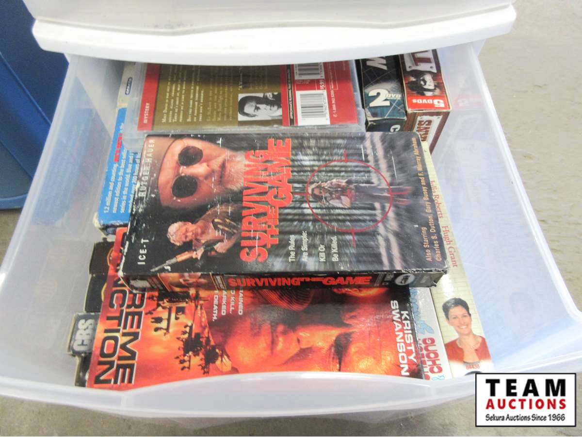 includes, VHS & DVD movies, miscellaneous electronic items