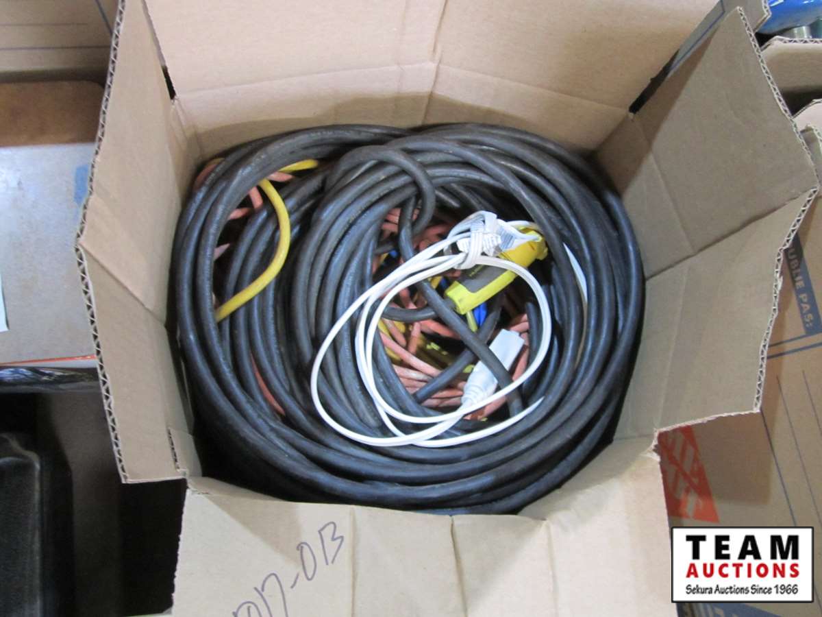 742 Box w/Assorted Extension Cords & Booster Cables