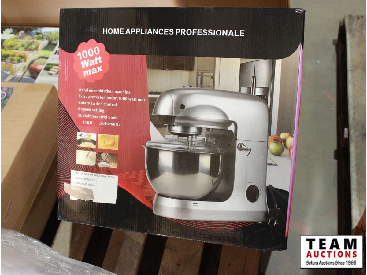 6 speed, 1000W max, 5L stainless steel bowl, 110V