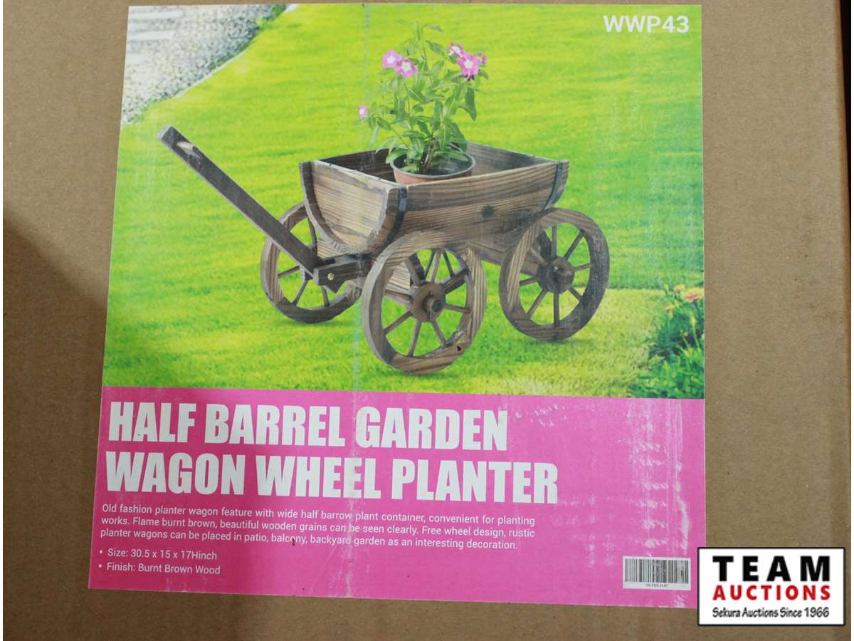 401 Half Barrel Garden Wagon Wheel Planter
