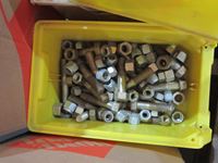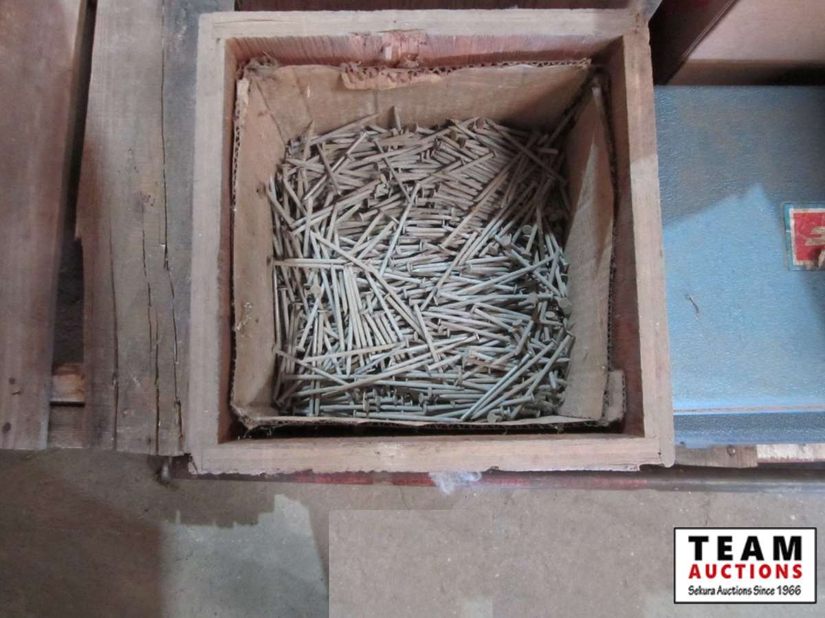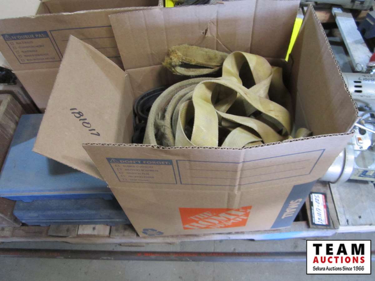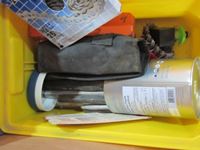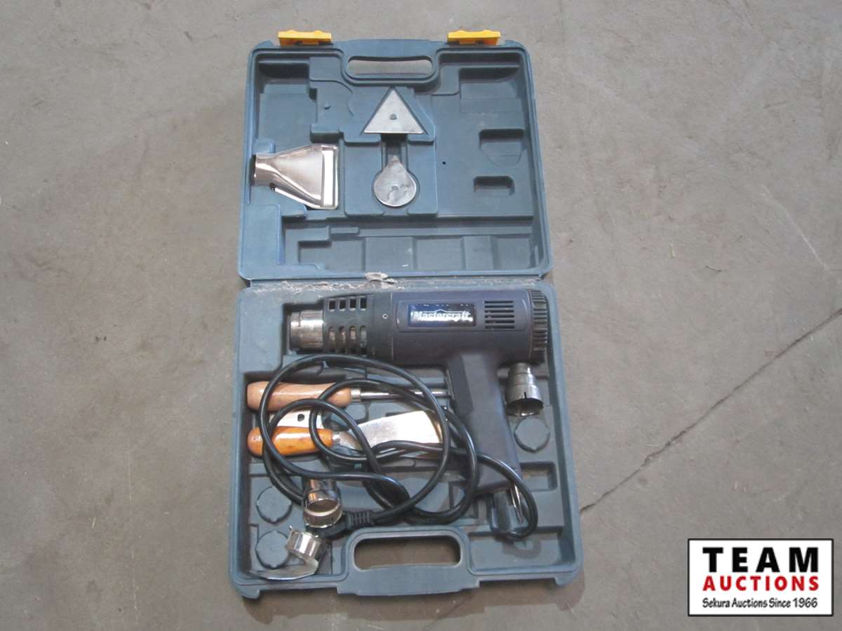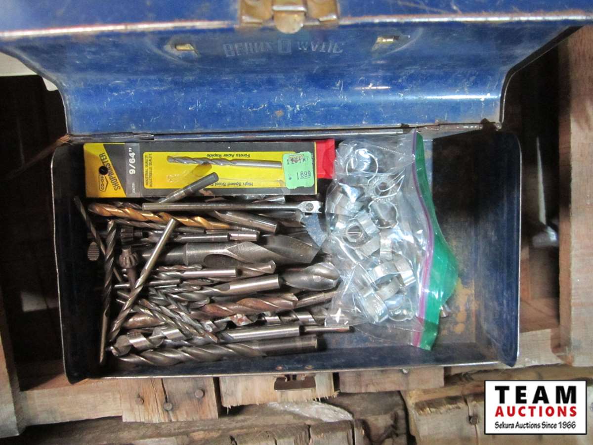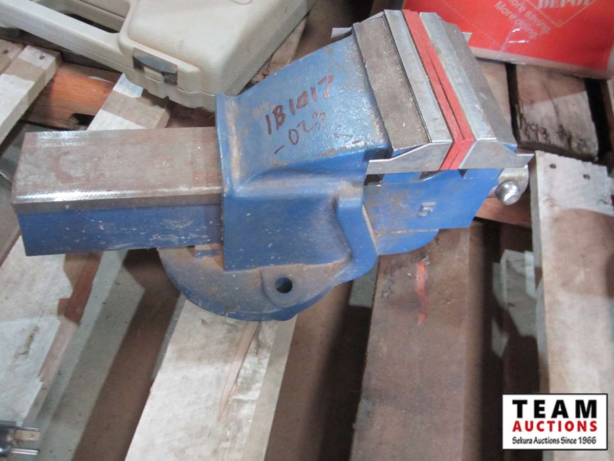 bench vice, rubber tie down straps, ratchet straps, chain, (2) boxes of nails, abs plumbing fittings, brass faucets, entry door set electric drill, test & tune kit, drill bits, Master Craft heat gun, misc hardware