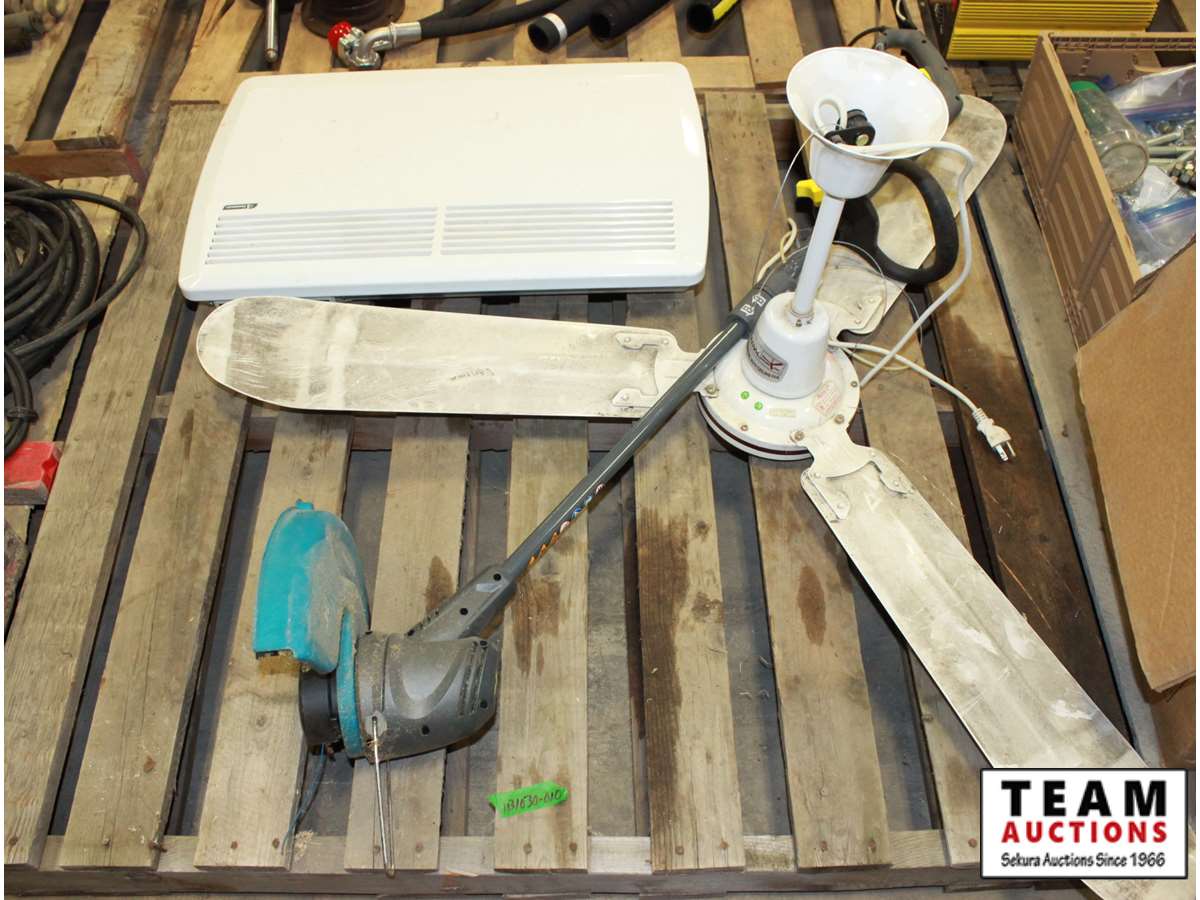 Yardwork's 14" weed eater, 1500W convection heater w/thermostat, commercial duty ceiling fan