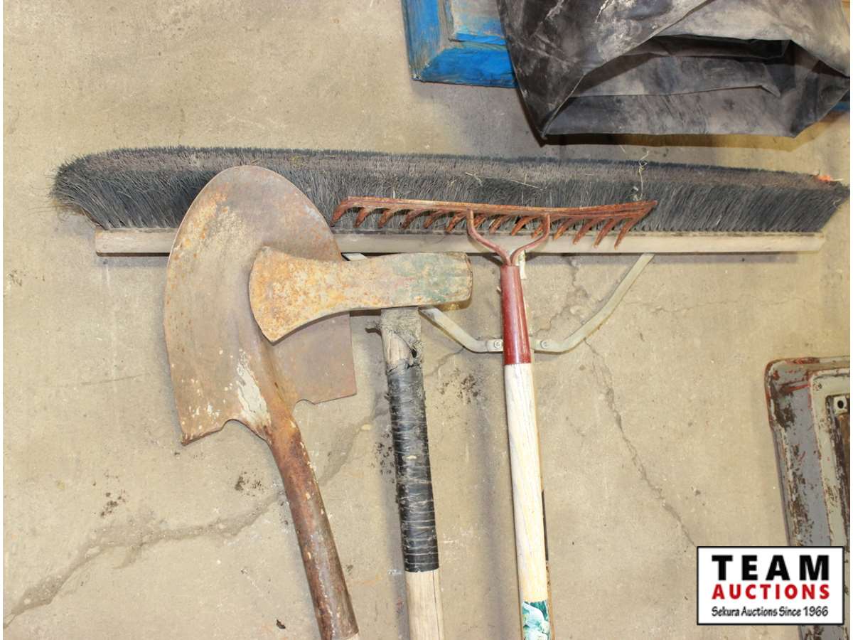 shovel, rake, axe, broom