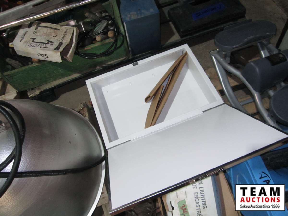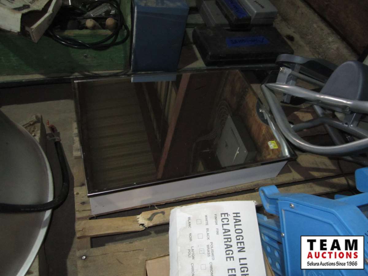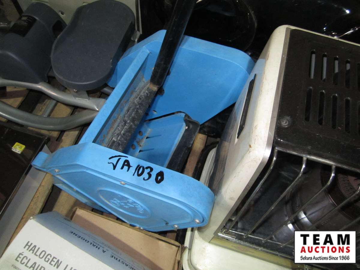 Kerosun kerosene heater, Coleman inflatable bed, recessed hydrogen light, black panther table base - no glass, mop wringer, 14" x 20" recessed medicine cabinet, quartz fan heater, step exerciser