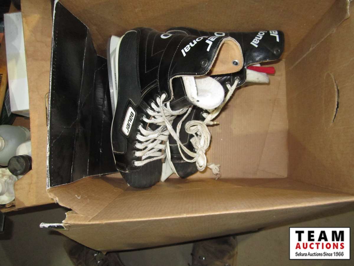 size 10 Cat work boots like new, Bauer 90 skates, mud flaps, grease gun,