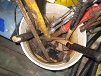 hammers, hardware storage box, mitre box, misc tools