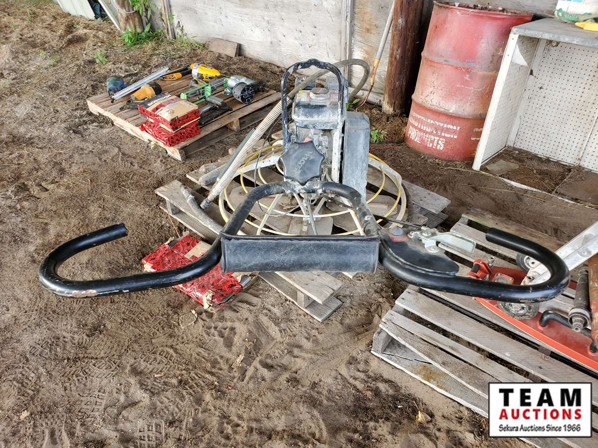 walk behind, rigid handle, Honda GX160 5.5 HP engine, (1) package new blades, (3) concrete vibrator attachments