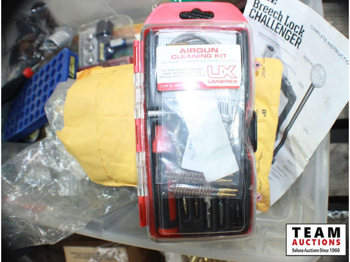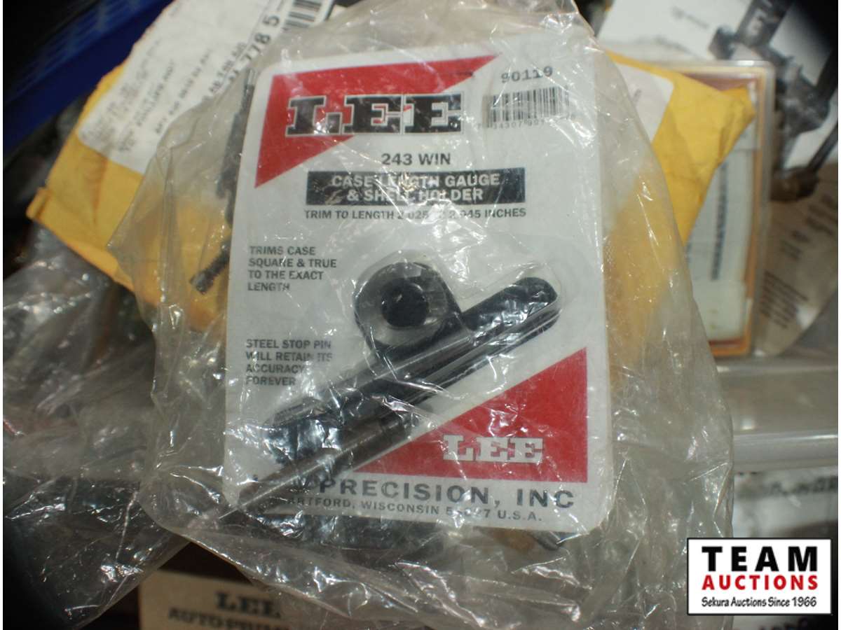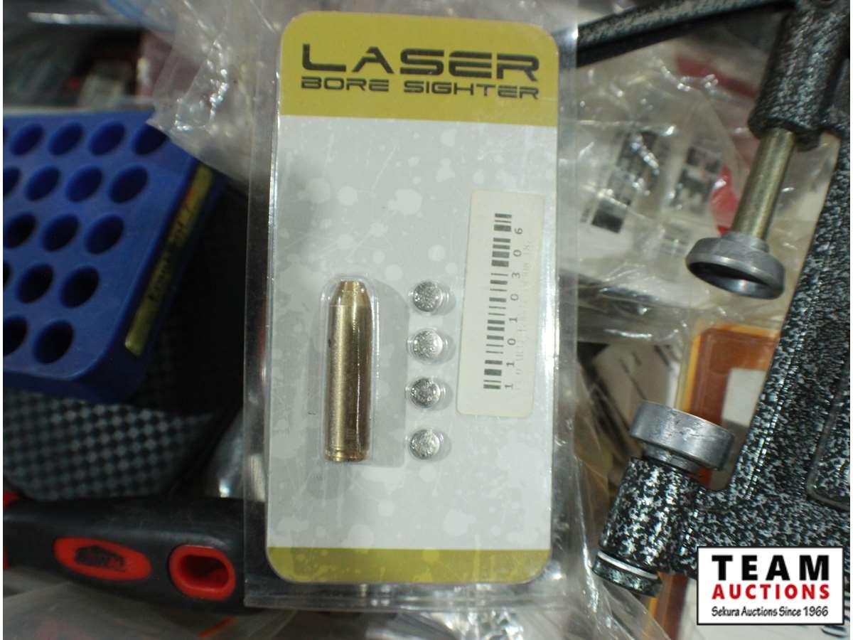 (3) cloth rifle/shotgun cases, laser bore sighter, pre-primed & polished .243 cal. Brass, .243 case length gauge & shell holder, misc. brushes, files, .243 snap cap