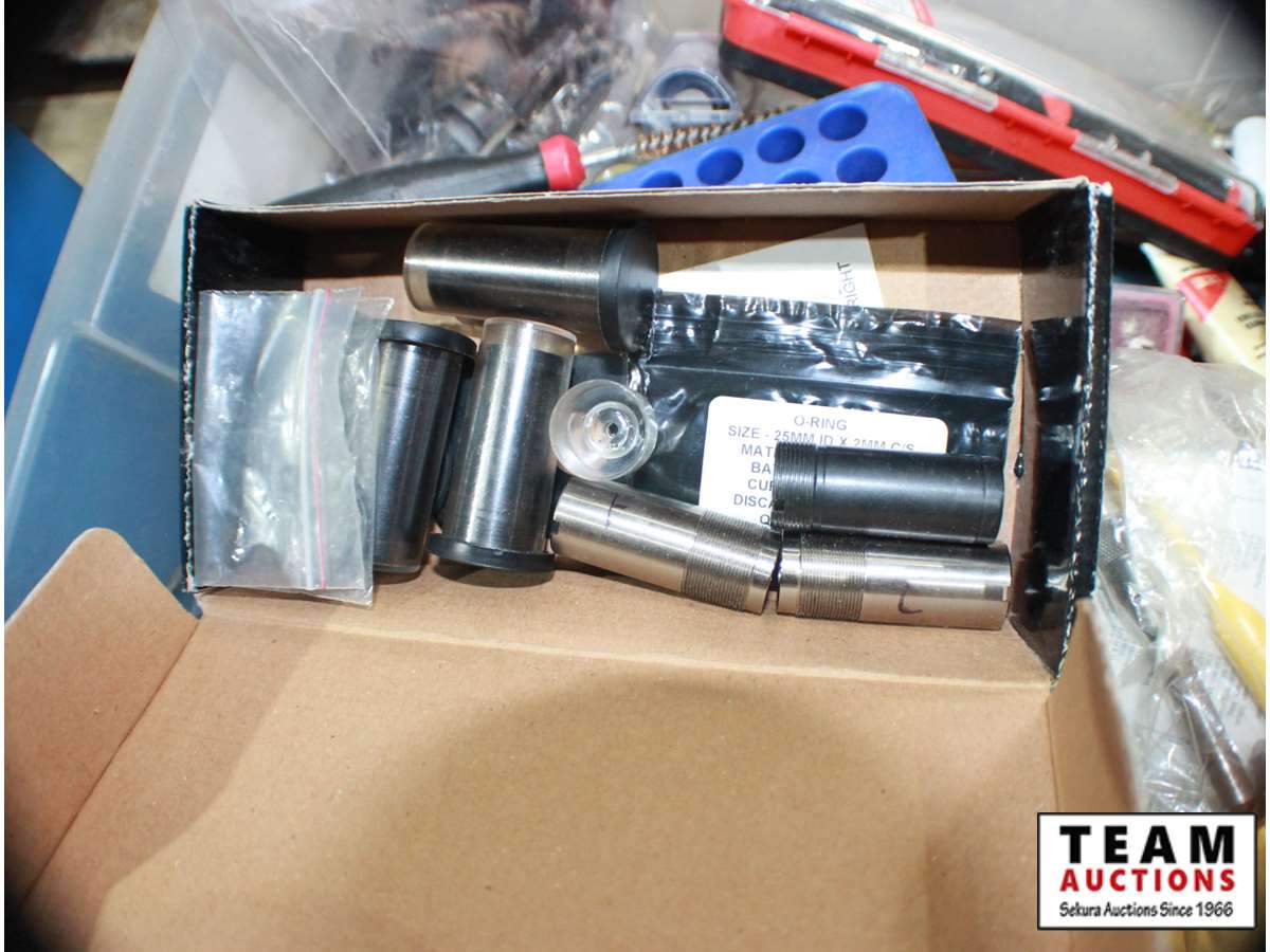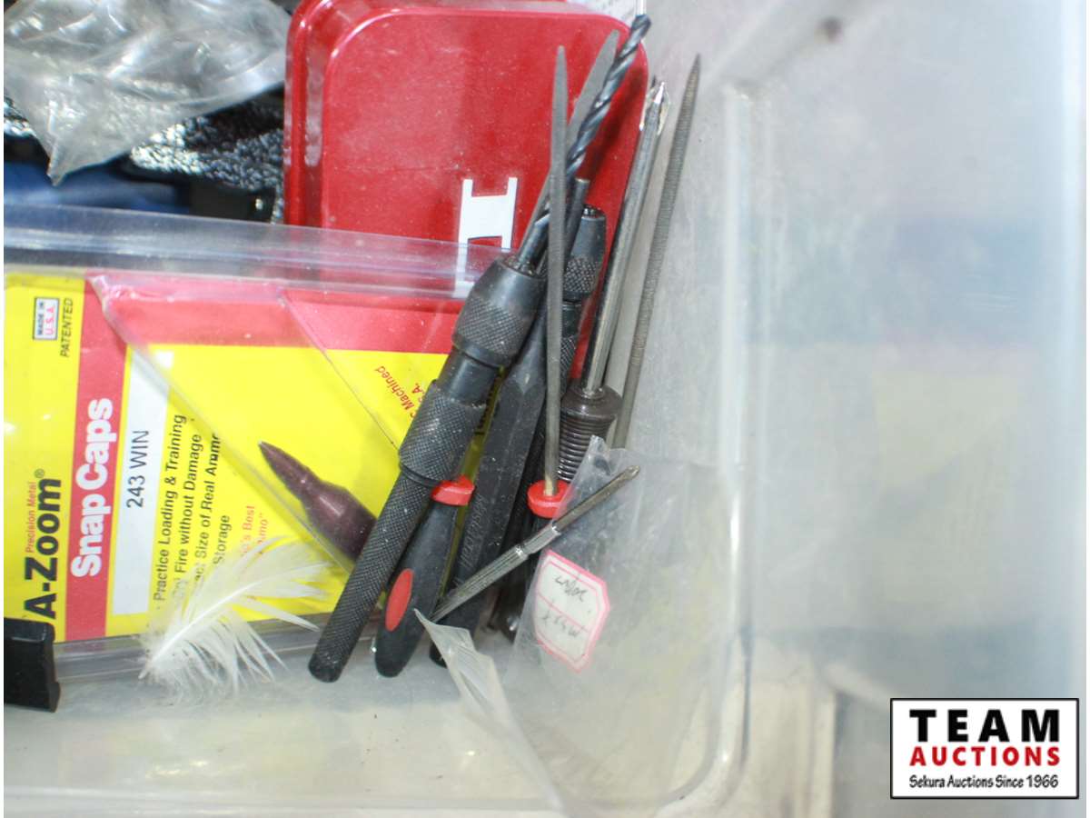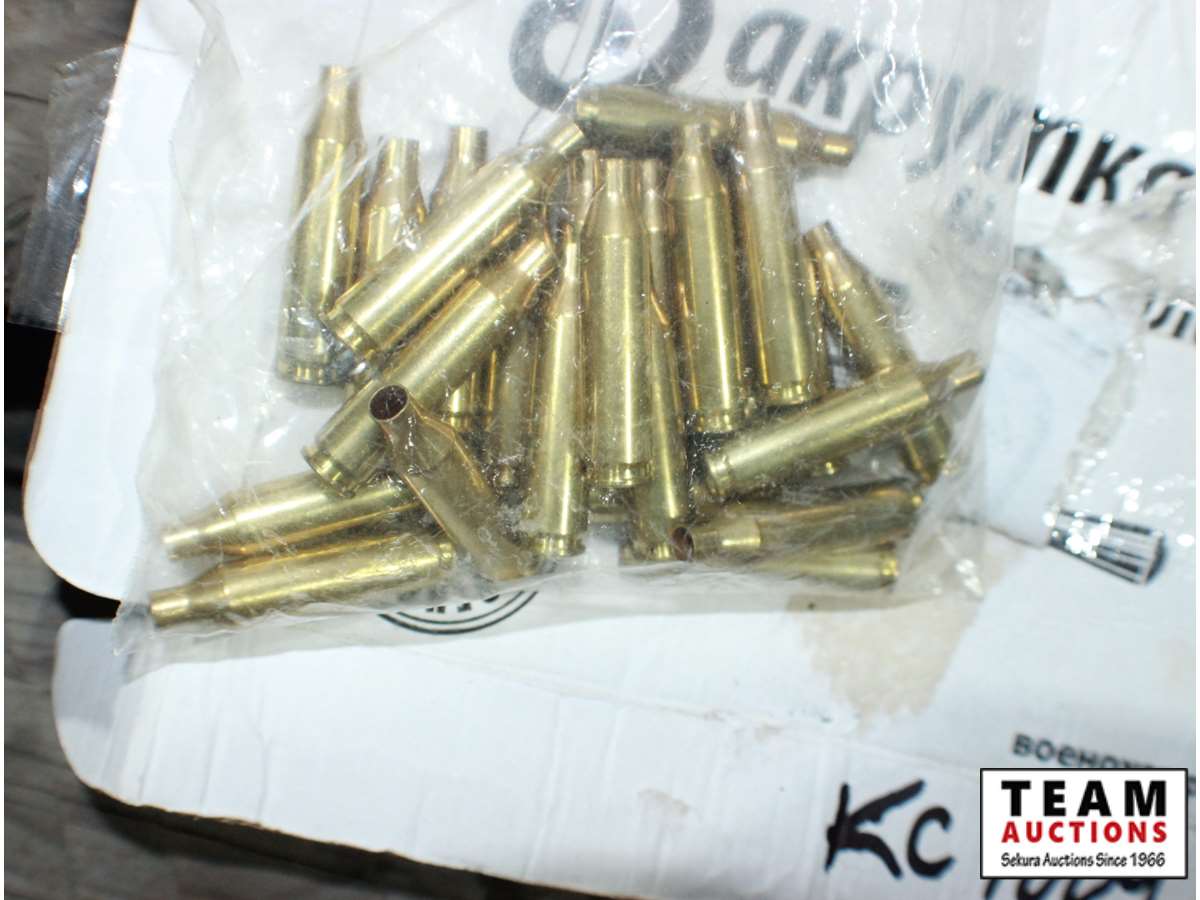 (3) cloth rifle/shotgun cases, laser bore sighter, pre-primed & polished .243 cal. Brass, .243 case length gauge & shell holder, misc. brushes, files, .243 snap cap
