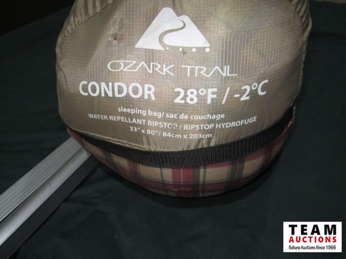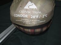 portable cot, sleeping bag rated to -2C/28F